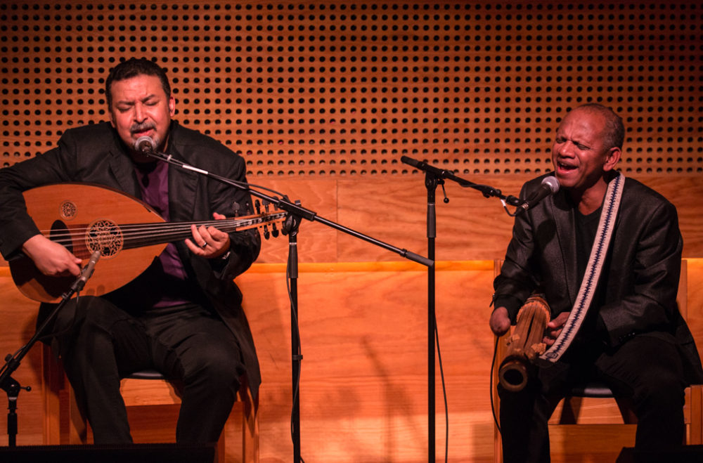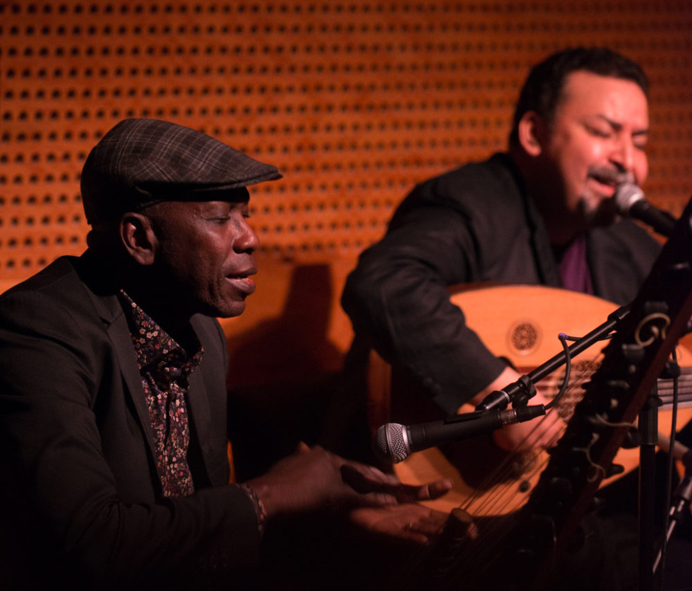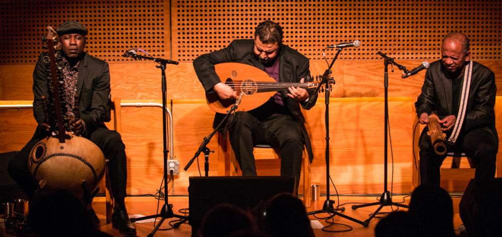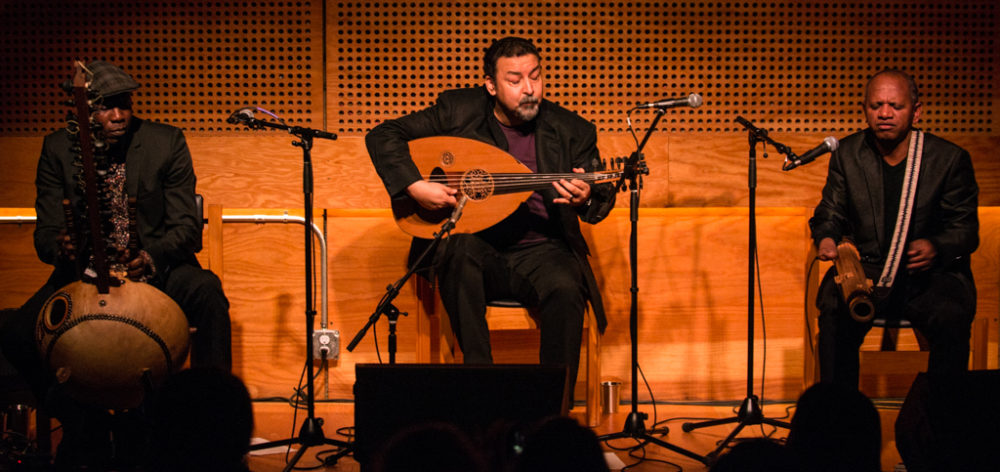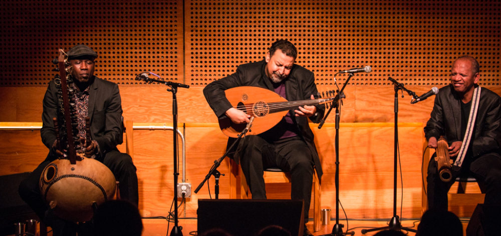 But it didn’t stop there. Almost 10 years and many concerts later, there was a second album, Anarouz (Mad Minute Music, 2017). That year, the trio also participated in Jordi Savall’s extraordinary touring show, The Routes of Slavery. On Feb, 1, 2020, the trio made their proper New York debut at Public Record in Brooklyn, a beautiful, woody room with a superb sound system and gorgeous acoustics. The concert was nothing short of phenomenal, as three masters blended their sounds and styles with consummate ease. There was no mistaking the enjoyment each took in the others’ musicality, and their interactions were at once fiery and affectionate. The room was packed, and the response was overwhelming.