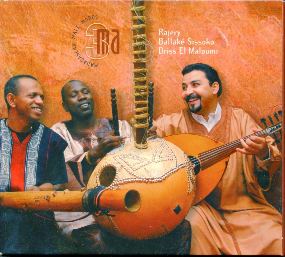3MA is an unusual trio of string instrumentalists from three countries that—in French anyway—all start with the letters M and A: Mali, Madagascar and Maroc. Ballaké Sissoko of Mali plays kora, Rajery of Madagascar plays the valiha tube zither and Driss El Maloumi of Morocco plays the oud. This project could have passed by as a collaborative novelty, producing a single album in 2008 simply called 3MA (Contre Jour).