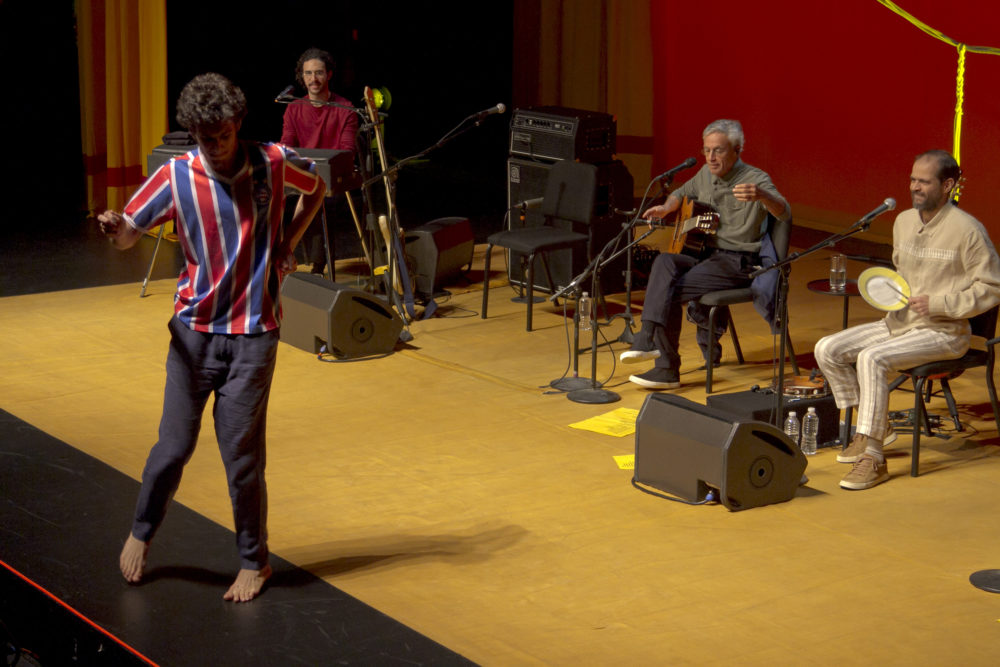If being the son of a beloved artist comes with an immense amount of pressure, you couldn’t see it when the quartet was on the stage. Each artist took his turn with his own songs, with the other Velosos forming the backing band, swapping guitars with a pandeiro, bass or Rhodes piano. The songs were fairly stripped down, letting the melodies breathe. Caetano may have made his name on Sgt. Pepper’s-style psychedelia, but he got his start with Domingo, an album of bossa nova duets with Gal Costa, and he’s never forgotten his roots. Although Caetano was the bigger star, his beneficent demeanor as one his sons played an original song, or even covered an old Caetano classic, brought the crowd right to where he was: happy and proud. Elder son Moreno might be the better known of the trio of Veloso Boys, thanks to his well-received Moreno +2 records, and his “Um Passo a Frente” was a definite highlight, although you got to hand it to Tom for his dancing.