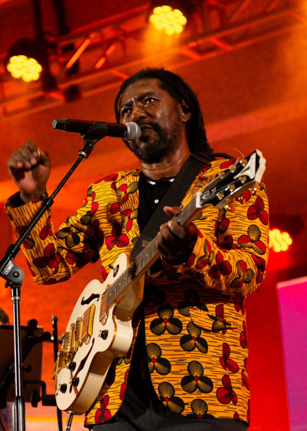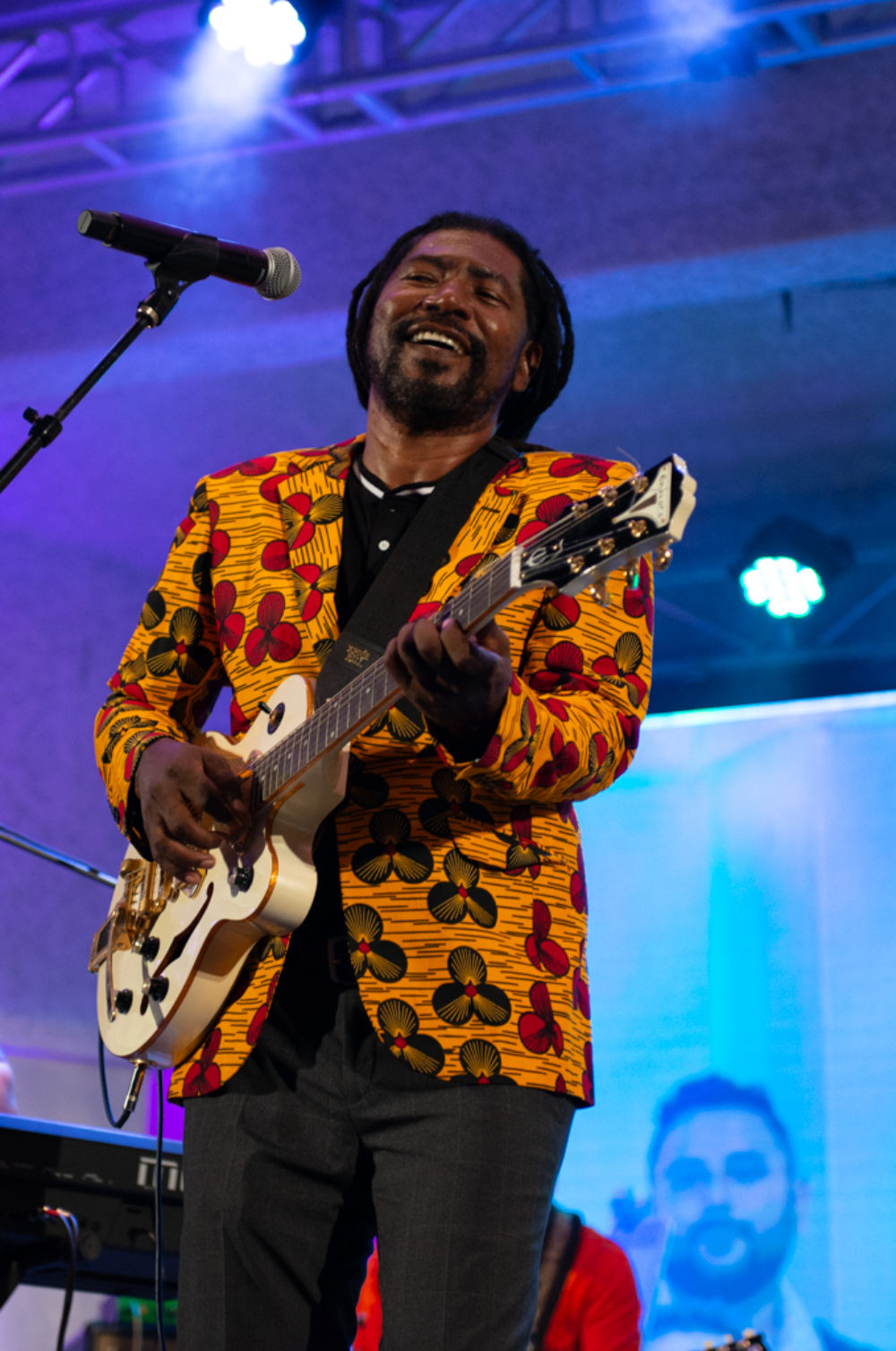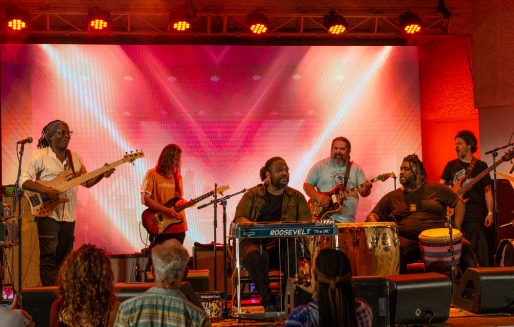Miami's Afro Roots Fest 2021 presented an extravaganza of live and virtual performances on May 1 at the North Miami Beach Bandshell. Virtual sets by Vieux Farka Toure in Mali and Fulu Miziki in Uganda (originally from Democratic Republic of Congo) interspersed live performances by Afro-Nicaruaguan singer/songwriter Philip Montalban and Sacred Steel pedal steel guitar master Roosevelt Collier with his band, including special guests Richard Bona on bass and Weedie Braimah on djembe and congas.