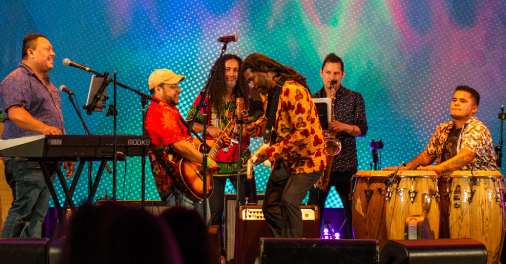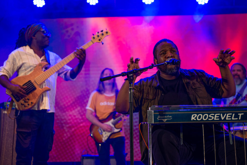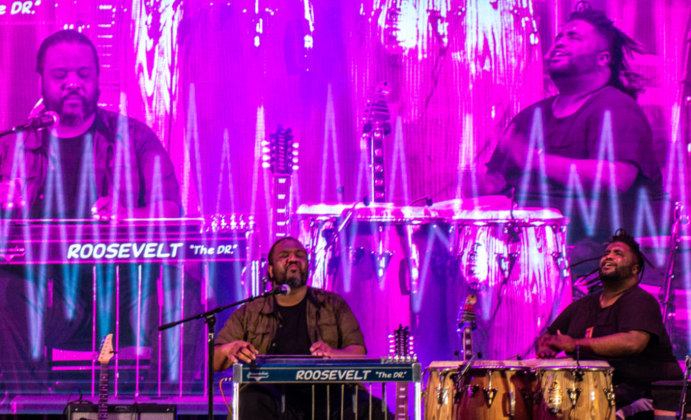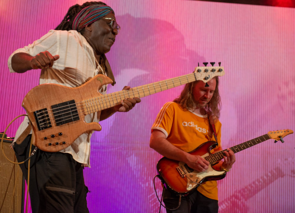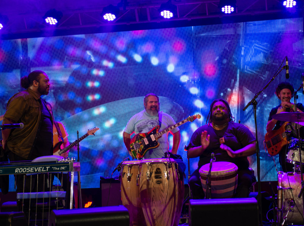 Miami's Afro Roots Fest 2021 presented an extravaganza of live and virtual performances on May 1 at the North Miami Beach Bandshell. Virtual sets by Vieux Farka Toure in Mali and Fulu Miziki in Uganda (originally from Democratic Republic of Congo) interspersed live performances by Afro-Nicaruaguan singer/songwriter Philip Montalban and Sacred Steel pedal steel guitar master Roosevelt Collier with his band, including special guests Richard Bona on bass and Weedie Braimah on djembe and congas.