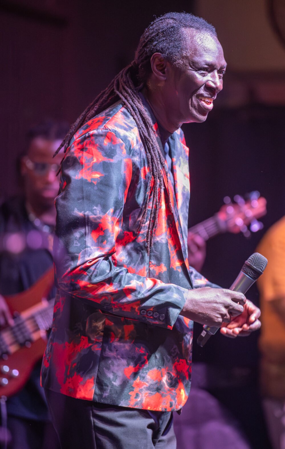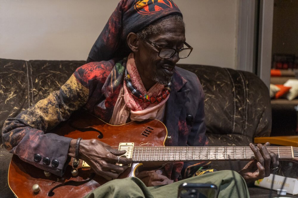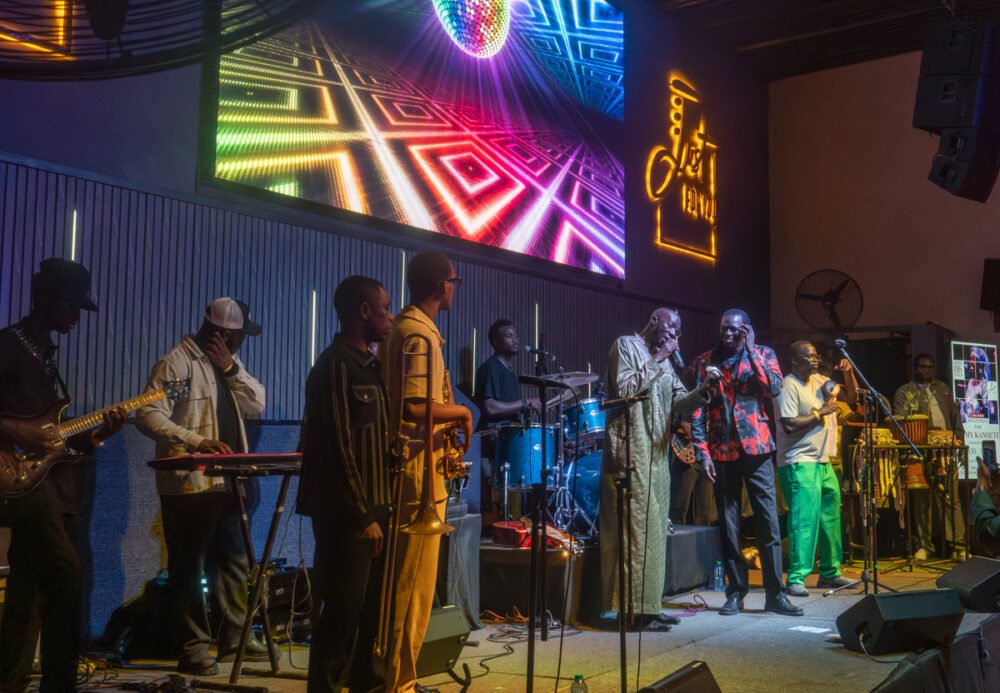Part of our mission in Senegal is to make arrangements for our Afropop Music Tour here in 2027. (Alas the tour is already sold-out, but 2028 is a distinct possibility…). For that, we need a fixer, someone who knows the musicians, has their respect, and their contact numbers, and is fully immersed in the scene. Enter Souleymane Kane, a man who has worn many hats over the decades, everything from festival organizing to mentoring. Our first meeting was fantastic and we found the energy to catch a Tuesday night Jazz Jam at a club called Just For You. This nightspot has been closed for four years, but recently reopened, and it’s hosting stars like Omar Pene, Coumba Gawlo Seck, Orchestra Baobab and Positive Black Soul. We’ll be back!