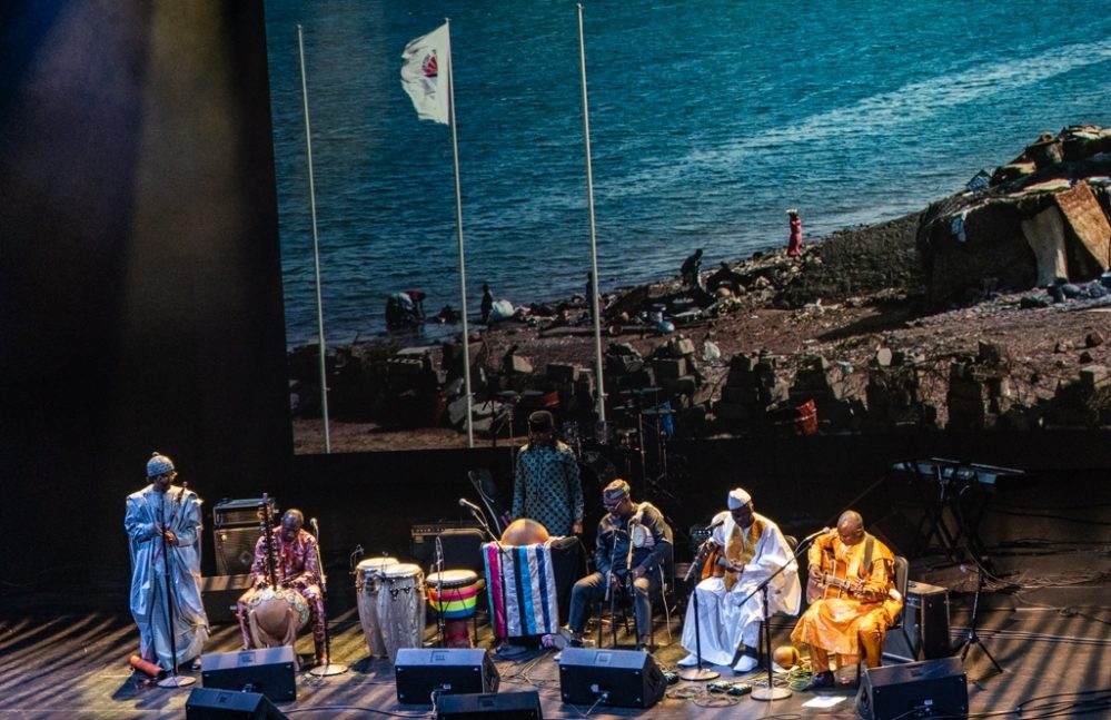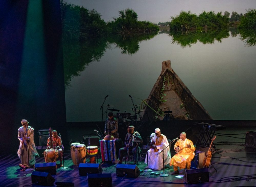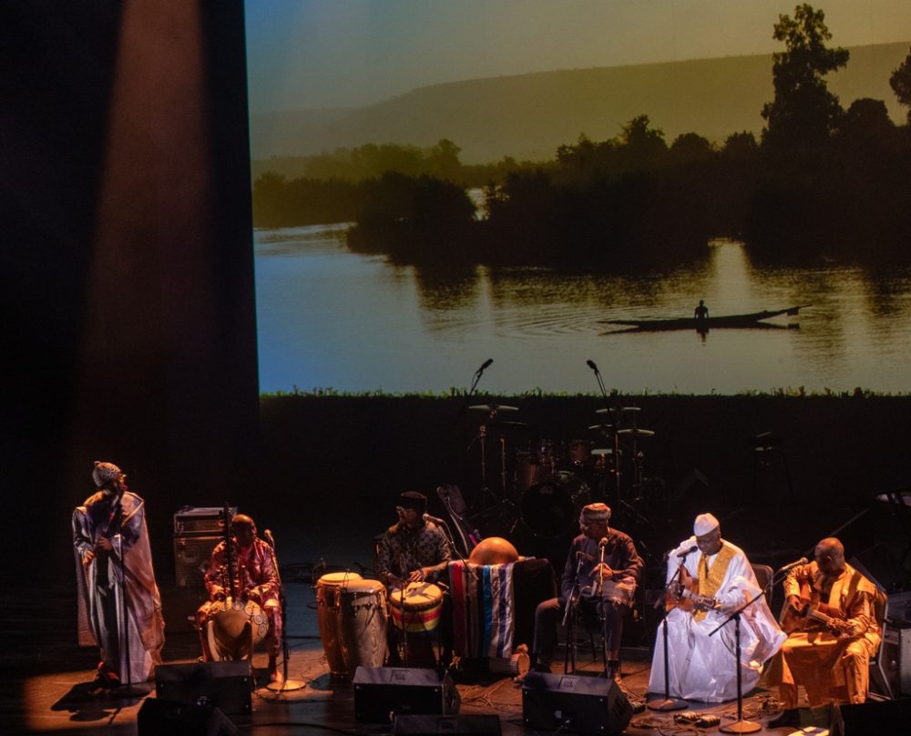 In his powerful book about the Niger River, The Strong Brown God, Sanche de Gramont calls the Niger “the cradle of West Africa” but also a “geographical conundrum.” 4000 years ago, it was actually two rivers, one flowing north from the Atlantic coast of Guinea to a huge lake in a then fertile and green Sahara, and the other flowing south from that verdant land to the Nigerian coast. As the desert expanded, the two rivers joined to become the Niger as we know it today. The Niger’s 2600 miles pass through mountains, forests, savannah, and high desert, then back into savannah, and forests to its huge delta in Nigeria, and that is the journey these six musicians were to trace in their performance.