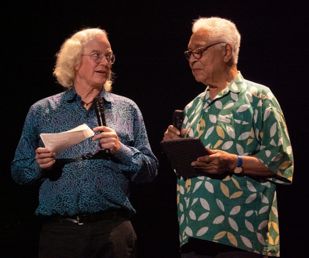 The second river of choice was the Congo River, another giant river encompassing a vast array of cultures. The Congo is the second longest river in Africa, second only to the Nile. At 2920 miles, it’s the world’s ninth longest river. It takes its name from the Kingdom of Kongo, which reigned on the river’s southern banks from the 14th to 19th centuries. The Congo and its tributaries wind through a vast rain forest, home to literally hundreds of ethnic groups many of whom have never truly been incorporated into any governing state, colonial or otherwise. This part of the performance focussed on the contemporary popular music of the Congo, born in Kinshasa and nurtured in the cities of Brazzaville and Kinshasa, facing one another across the river. In colonial times, these were Belgian and French occupied cities respectively, but thanks to the river, their cultural makeup was and is far more complex. Varied peoples from all along the river have made their marks in these cities, and in the process, created one of the most enduring musical legacies in African music history.