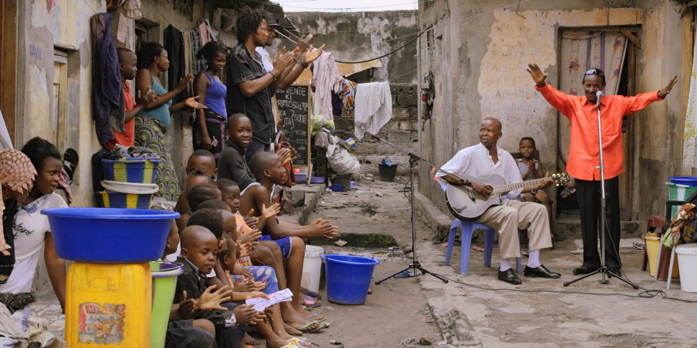 So, I put together some sequences of the film with that approach, but it felt wrong to me. I felt that by focusing on the struggle I was not really paying homage to the legacy of these musicians nor was I letting the audience connect properly with their music. I reviewed many documentary films about Congolese and African music, and most of them focused more on the struggle of the musicians than on the music. And when watching these documentaries, I was offered very little space as a viewer to learn about the music and appreciate the musicians’ skills and talent. Some of these documentaries would show you a musician having breakfast two times in the same film, or they would show you the musician walking through the neighborhood. Then, on the other side, the same film may not have even two musical performances, with high quality sound and video, that properly portray the stardom and/or talent of that musician.
