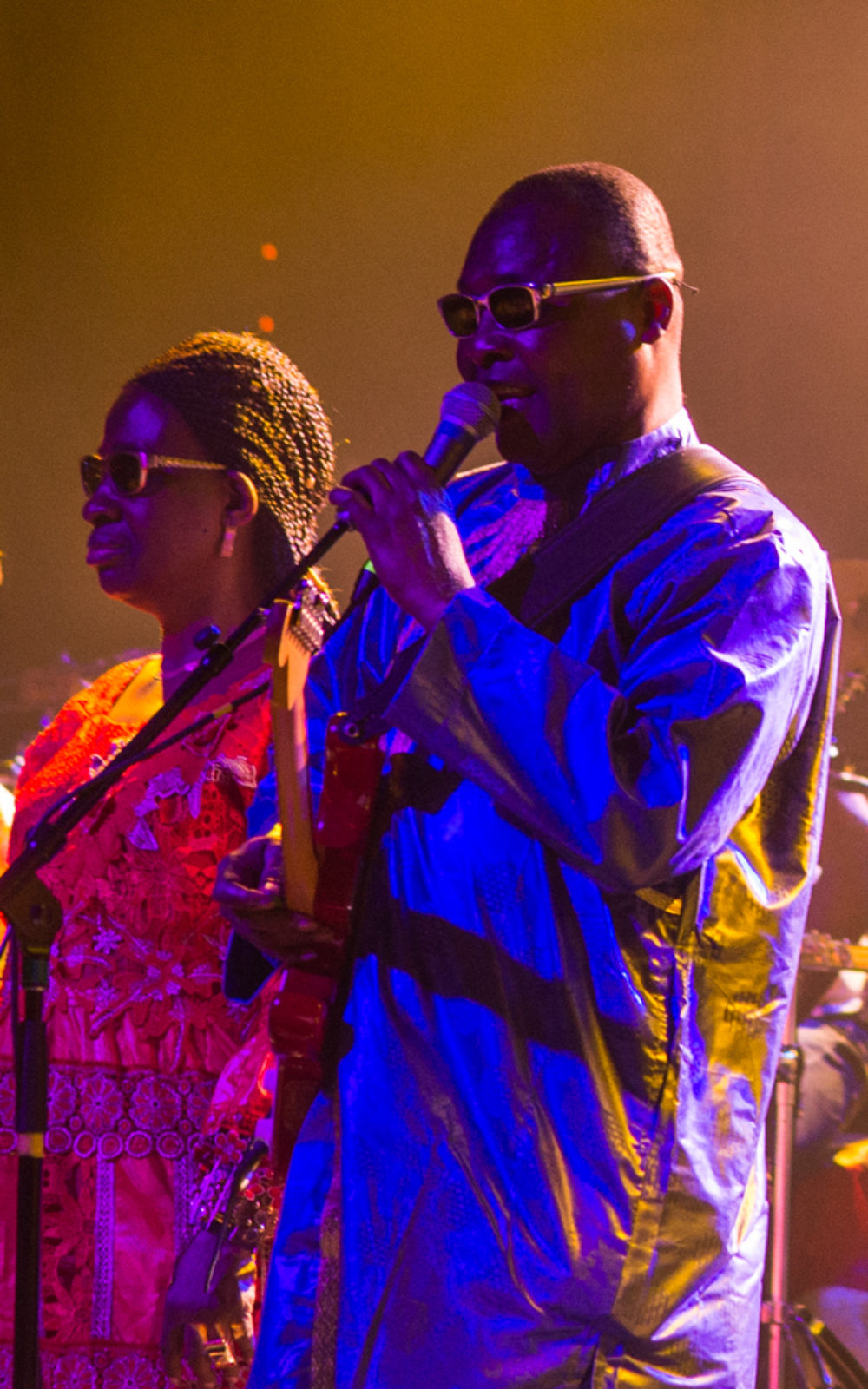 Well, this time we didn't invite guests. This time the music stayed with Amadou and Mariam and our keyboard player, Adrian Durand. So that was a little different from our recent albums. Because we always want to change the color of the sound, change the genre, to try to make it so that the music is always a discovery. There's still blues in there, and this time disco. Afro-disco. Afro-rock. It's all mixed together.