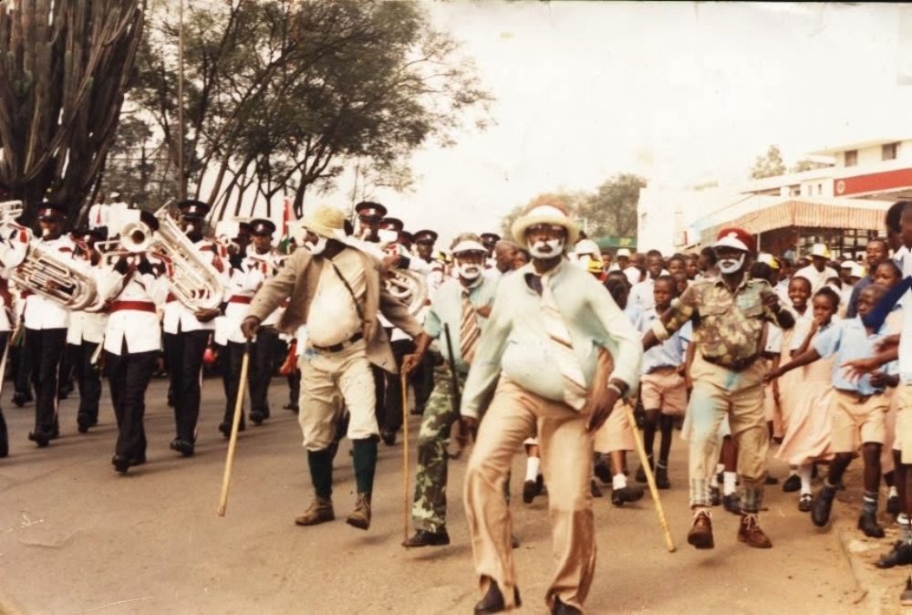 The pith helmet you see on “Zangalewa”’s record label was headgear the colonial powers issued to their soldiers in the “hot tropics.” Neither swagger sticks nor pith helmets have anything to do with Cameroon’s military. So, along with the whiteface, “Zangalewa” becomes a protest against Cameroon holding onto too many pernicious colonial practices. Swagger sticks, pith helmets, and especially whiteface, strongly signal collaboration. After a nation is subjugated by a foreign power, that’s really the worst crime you can commit. For example, Iraq.