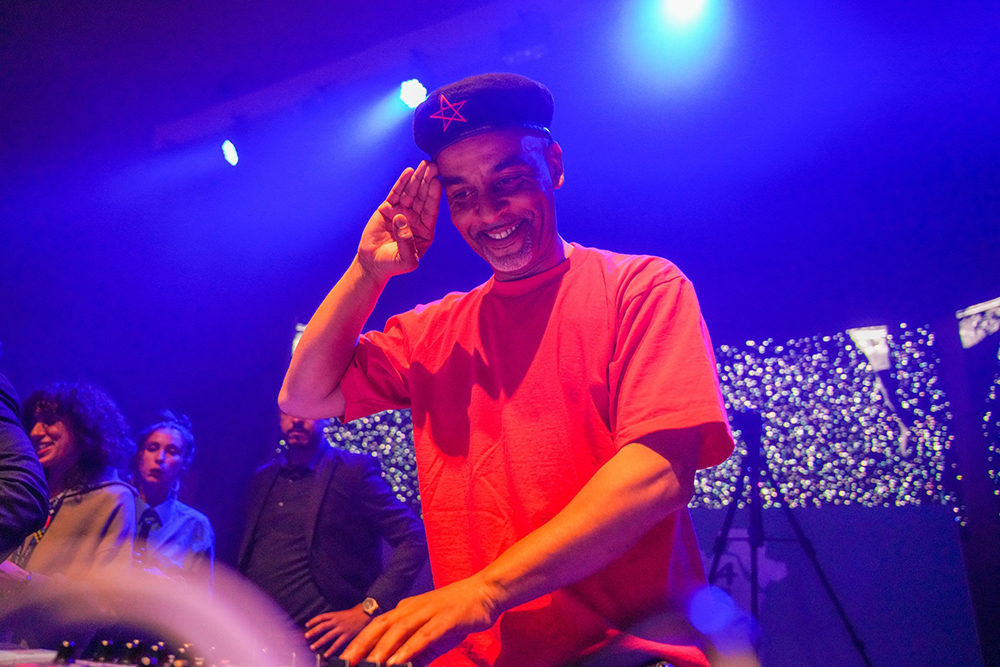 Sporting a Che-style black beret on Wednesday night, Aziz’s retro-futurist populism was enhanced by sleek video production. Shot during research trips to Azzemour and Khenifra, the glitchy footage playing behind Aziz featured scenes familiar to anyone who has driven around rural Morocco: windy mountain roads, smiling teenage boys riding bikes, empty town squares. As he transitioned to the driving synth lead of “Kindir Surprise,” the monitors began to display images of local welders building the chasses for long-haul cargo trucks. The looping edits of intricate metal grills and flashing arrays of signal lights revealed surprising resonances between electronic dance music and this solidly working-class Moroccan trade. With this visual sequence, Aziz drew our attention to yet another overlooked aspect of the country’s artistic heritage.