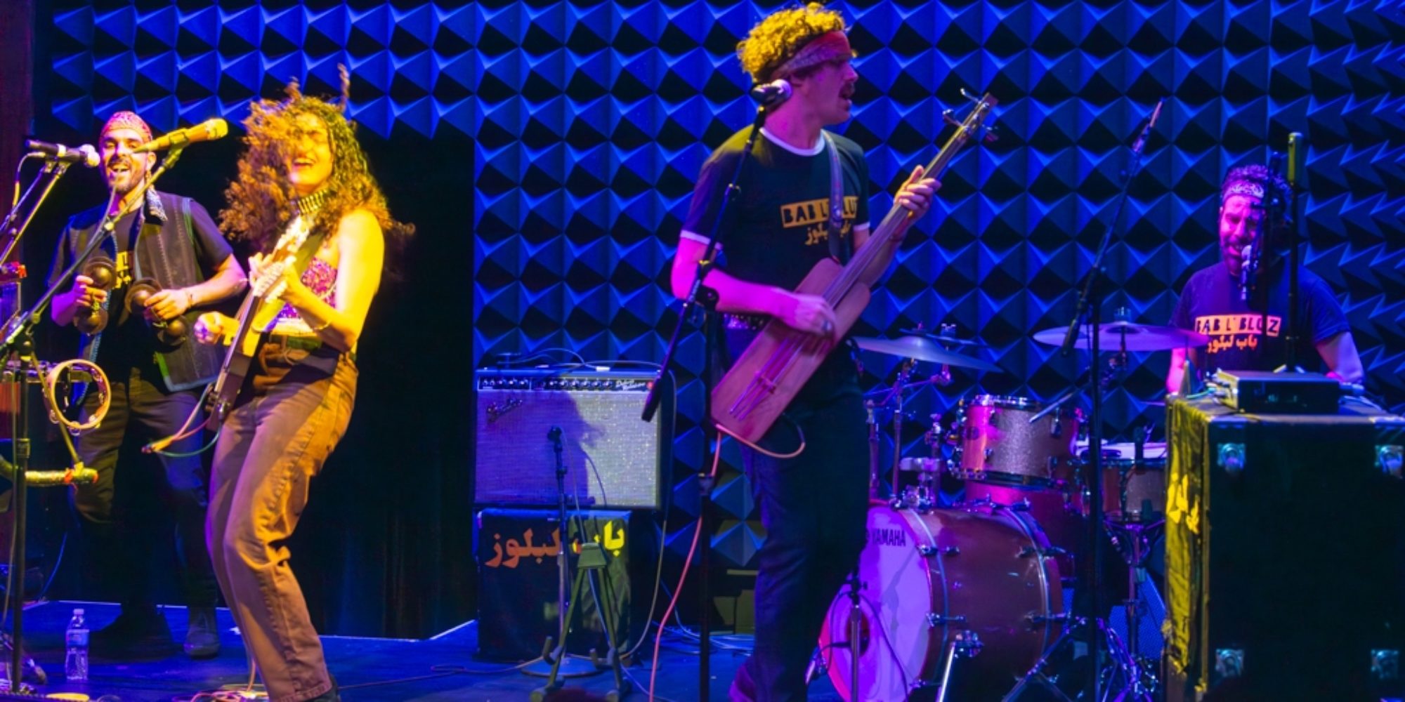 Bab l'Bluz has been the brainchild of French musician Brice Bottin and Moroccan musician Yousra Mansoor since they first met in 2016 as part of a music collective in Morocco that was combining modern jazz and traditional Gnawa music. The duo bonded over their love of Gnawa, but also the blues and rock. They quickly found their groove, formed a quartet, and composed 10 songs that eventually became their first album, Nayda, released in 2020 on Real World Records. Not bad for a new band. After touring worldwide and building their fan base, they released their second album, Swaken, in 2024.