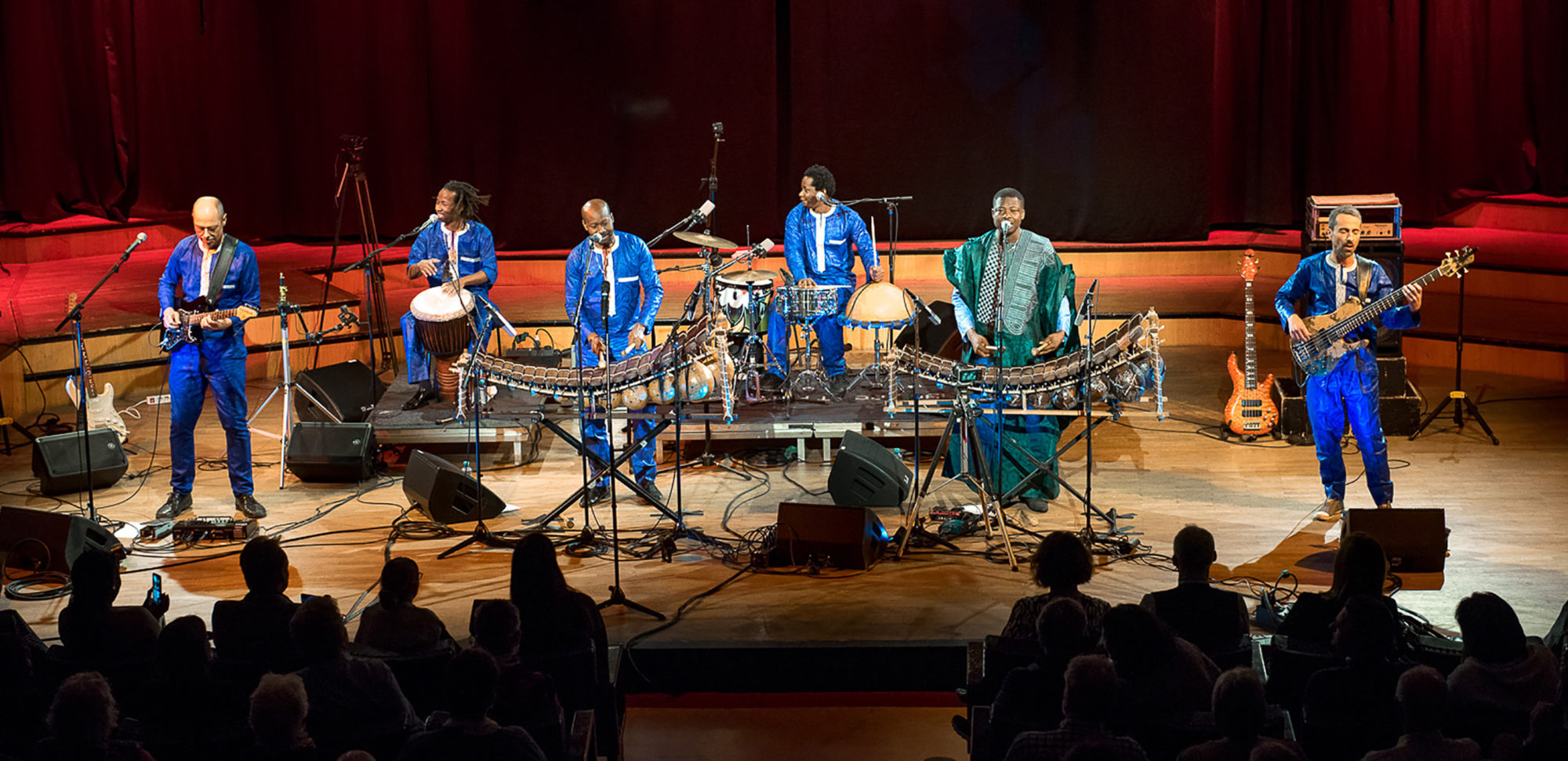 Mamadou Diabaté, not to be confused with the famous Malian kora player with the same name, is generally considered a maestro of the balafon, a kind of wooden xylophone or percussion idiophone that plays melodic tunes. The instrument usually has between 16 and 27 keys, and it has been played in West Africa since the 1300s. Diabaté comes from a traditional djeli family of musicians and storytellers of the Sambla people in Burkina Faso. Mamadou and his cousin Yacouba Konaté lead a dual balafon assault that can set any stage aflame. Explicit techniques allow Mamadou to play solos that create the impression that three balafonists are playing together. His first CD, Sababu, was released in 2001. This November Diabaté presented his new 14th album, Nakan, in Vienna.