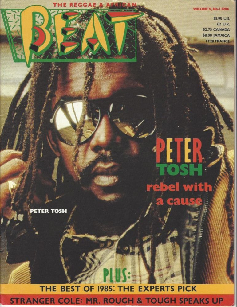 Peter Tosh, one of the three original Wailers, would have celebrated his 73rd Earth Day on Oct. 19. In commemoration, BOTB pays homage to the restless, outspoken, impenetrable Mystic Man with an in-depth interview by The Beat’s founding editor, Roger Steffens, entitled “Rebel With A Cause” published in 1986, the year preceding Tosh’s violent murder in 1987. Their conversation includes often-incomprehensible tales of Tosh’s turbulent life and career, his devotion to sinsemilla, the severe beatings at the hands of the police, visions of duppies (ghosts) and other spiritual encounters, and his inspirations for his many songs.