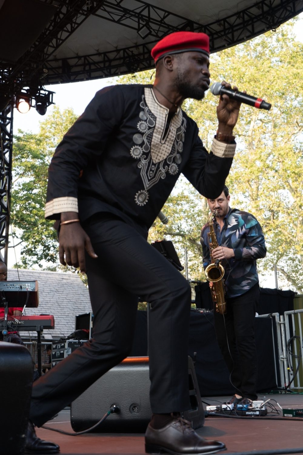 Then came the film, a riveting tale captured by some extremely brave cameramen willing to wade into ongoing violence to document the appalling brutality of Museveni’s police state. The screening was particularly effective following Wine’s set and unfolding beneath a moody, New York summer sky at dusk.