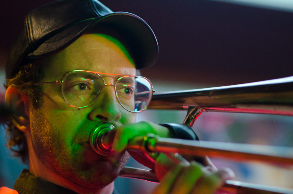 Alex Asher (trombone): It just kind of happened. I specifically was not trying to start a band. But sometimes the feeling is right. That was the summer of 2015. The rooftop party was followed by a highly corporate bourbon event where they said we need a blues band. And I said, "Yeah, we can do that." We showed up in the Lower East side, and everyone was drinking this sugary bourbon beverage and they were very drunk, and they didn't care what the music was. So then Lautaro said, “Let’s play cumbia.” We got a residency at Barbes and Bembe. Nestor brought us some deep cuts, And we started to cover salsa and cumbia [and other Afro-Colombian styles] in our own style, filling in the cracks with lack of knowledge in those genres by throwing in some Sun Ra.