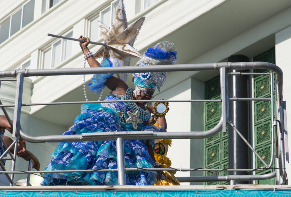 But at the same time, this is an event with an overwhelmingly local vibe and identity. One of the most visible marks of that is the blue and white regalia of the Filhos do Gandhy (Sons of Gandhi), long presided over by Bahian maestro Carlinhos Brown, and these days overseen by Gilberto Gil himself. During his years as Minister of Culture (2003-08), Gil did a lot to enshrine Bahian traditions such as the Filhos in the permanent tapestry of Brazilian culture.