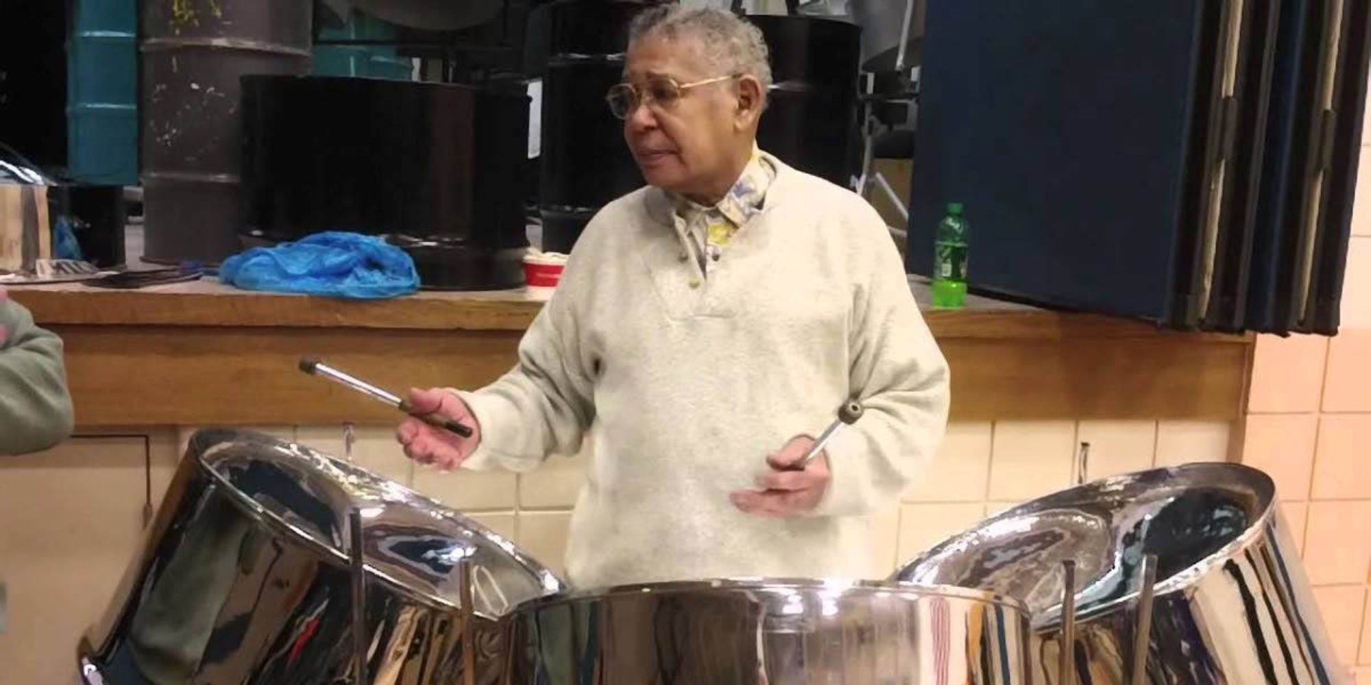 Ellie Mannette passed away on Wednesday. Mathematically I knew that I’d probably live to see that day, but somehow I didn’t believe it. Ellie seemed to age without losing his strength, his drive. I guess I started to think of him as immortal. I heard he went peacefully. He was 90 years old. At 89 he was tuning better than ever, and still flipping bass pans over to tune from both the top and the inside. His solo triple pan playing was exquisite and I swear he was still getting better.