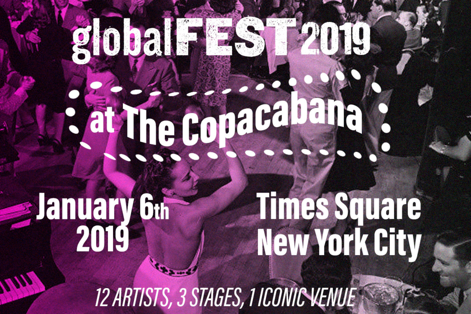 The 16th annual globalFEST goes down Jan. 6, 2019 at New York’s Copacabana Club—the legendary night spot that in its initial heyday, with a Brazilian name and décor, Cuban bands and menu of Chinese food, was a testament to post-war protoglobalism. But beautiful as the venue may be, the star, as always, is the music.