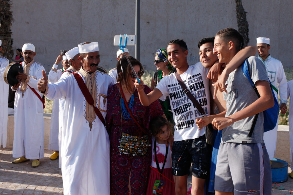 Gnawa, and this festival, have become a celebrated common language, a revered cultural heritage, and gathering place for Moroccan youth. Gnawa is taken as a distinctly “African” dimension of Moroccan culture by a generation that is increasingly leaning away from the colonial residue of Eurocentrism toward their continental neighbors. Many Moroccans continue to conceive of their country as something distinct from “Africa,” a word that they often use to mean only sub-Saharan Africa. This, of course, is born of a very convoluted national history, carries all kinds of racist and colonialist undertones, and has been subject to huge amounts of debate and cultural commentary.