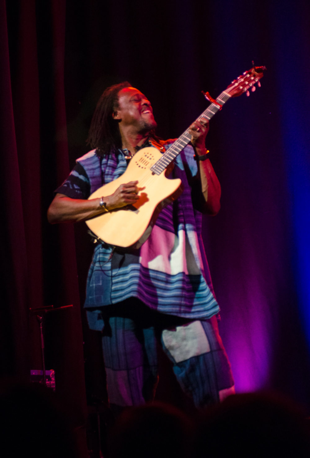 Despite all this sturm und drang, Boston presenter World Music came up with an elegant solution for this concert. The show would open with Derek Gripper and African Strings, a new project in which the South African classical guitarist, who has made a career out of playing mostly music from Mali, is backed by Congolese guitarist Jaja Bashengezi and Ugandan multi-instrumentalist Kinobe. These two outstanding musicians now live in Washington D.C., and combine their talents on each other’s work and other projects, including recently the debut album by the Congolese/American vocal duo Nsimbi.