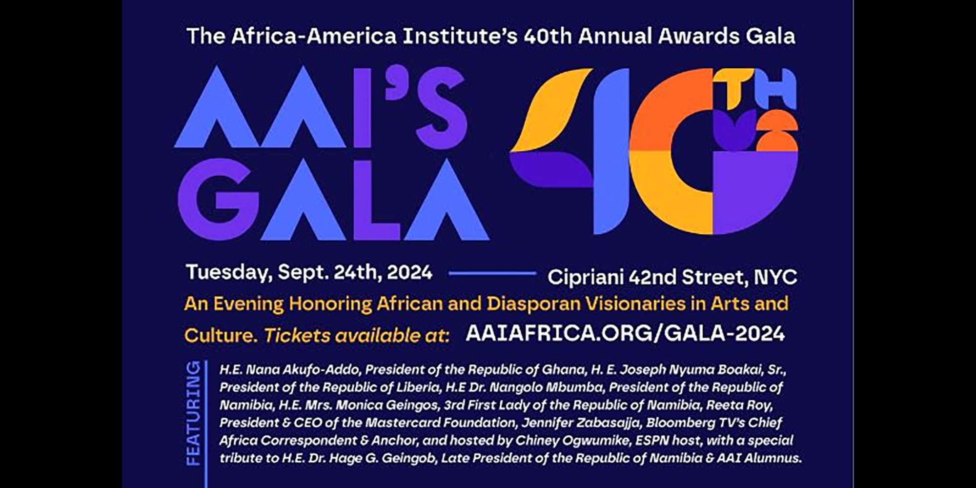 Kofi Appenteng is the President of the Africa-America Institute (AAI). Founded in 1953, AAI is a premier U.S.-based organization dedicated to bridging Africa and America by educating people and connecting worlds. AAI’s programs with leading universities have provided scholarships and fellowships to tens of thousands of students, and AAI alumni are at the forefront of Africa’s public, non-profit, and private sectors. Every fall, during the UN General Assembly, AAI holds a Gala in New York City to showcase outstanding success stories, and to rais funds and set the course for another year of fulfilling the organization’s mission. This year’s event takes place on September 24 at Cipriani’s on 42nd Street. Afropop Worldwide has worked with AAI in various ways in the past, notably providing music playlists for the annual Gala. Afropop’s Banning Eyre recently spoke with Appenteng about the organization and the coming Gala.