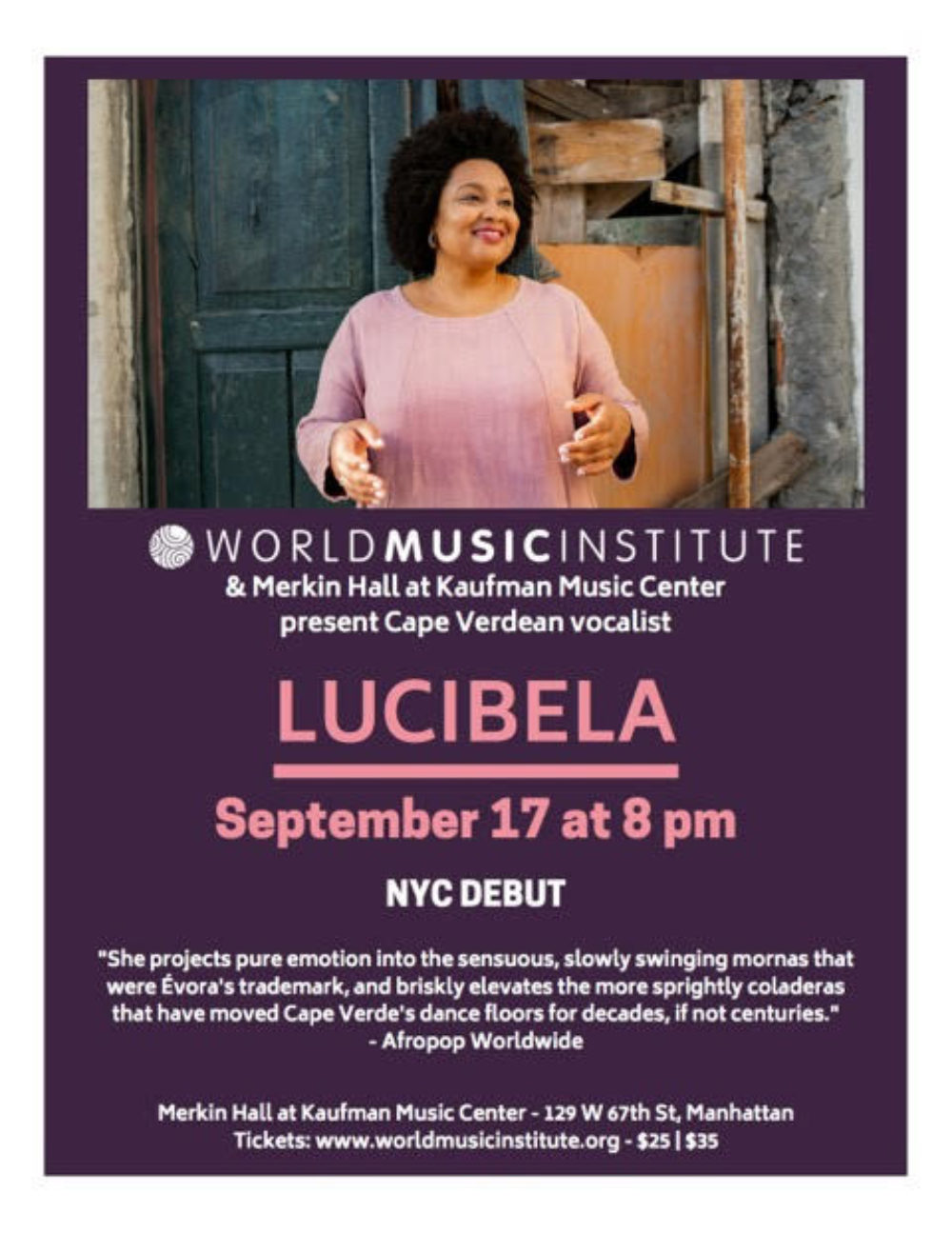Cape Verdean singer Lucibela has arrived in the U.S.! Her debut release Laço Umbilical knocked me out when it was launched in Europe last year. Now the album is having a second unveiling in a new North American release to accompany this long-awaited tour.