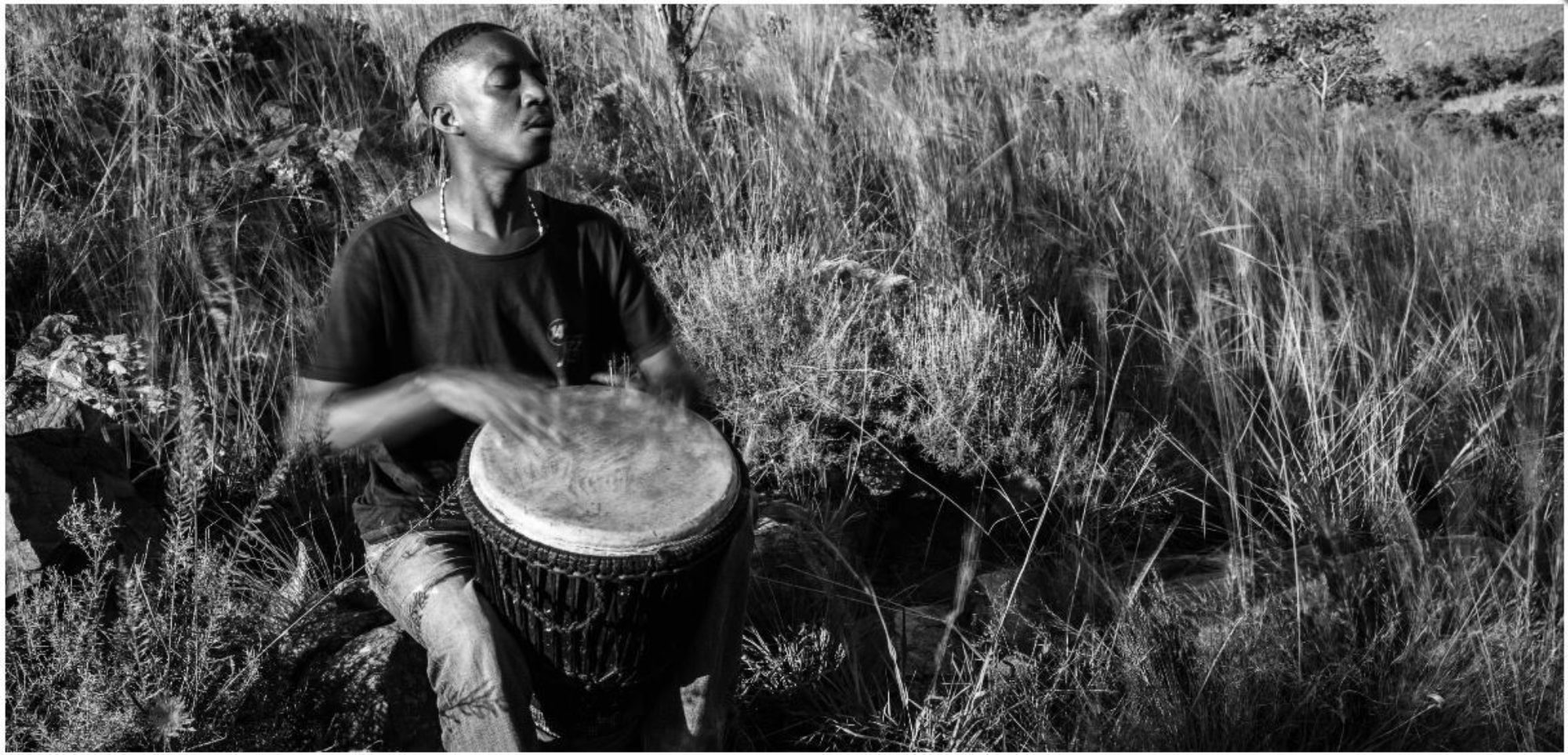 Thabang prioritizes his album the same way. The malombo drums always feel right out in front. They may or may not be that much higher in the mix than drums typically are, but since they are pitched higher than a typical drum kit, and all the other instruments seem to take cues from them, they feel unusually central. Sibusile Xaba and Thulani Ntuli's respective guitar and bass lines bounce off Thabang.