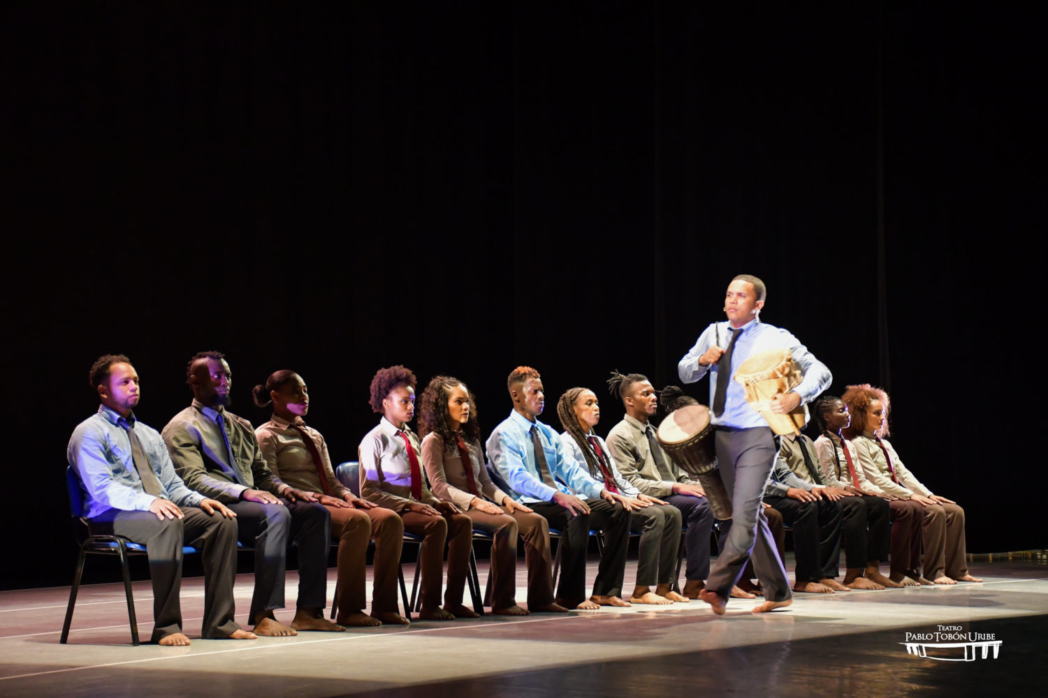 But as Colombia's history makes very clear, not all movement is created equal, which was my first impression when I saw Sankofa Danzafro perform in the Pablo Tobon Uribe Theater in Medellin in late May. This movement, confined to a stage under pale white and violet lights, was comprised of a troupe of 14 dancers who, despite their bare feet, were all dressed in the same attire: a long tie, dress shirt and dress pants. On first viewing, the performance, entitled La Ciudad de Otros or “the city of the others,” is a homage to the white-collar worker who punches a clock and moves in fish-like schools along corridors of the city without distinction.