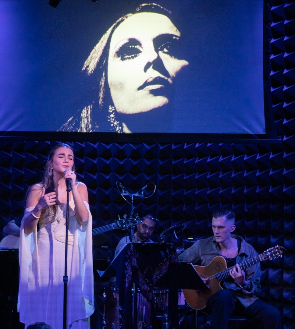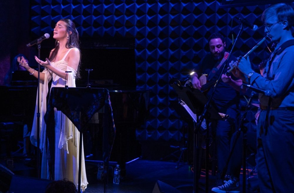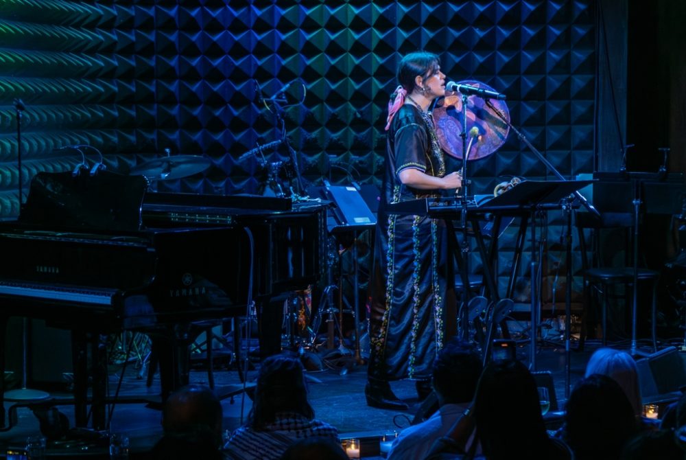 Then came Mona Miari, a Palestinian singer and songwriter who was a sensation at the Habibi Festival at Celebrate Brooklyn this summer. The audience reaction when Meera Dugal asked who had seen CB show confirmed that point. Miari’s set here was also sensational. Her agile voice, full of colors and intensities, had the audience enraptured. The set began on a light note, but when she addressed the audience and spoke about the past year in Gaza, she was fierce, speaking of a 76-year “occupation” and a year-long “genocide.” From there the music deepened.