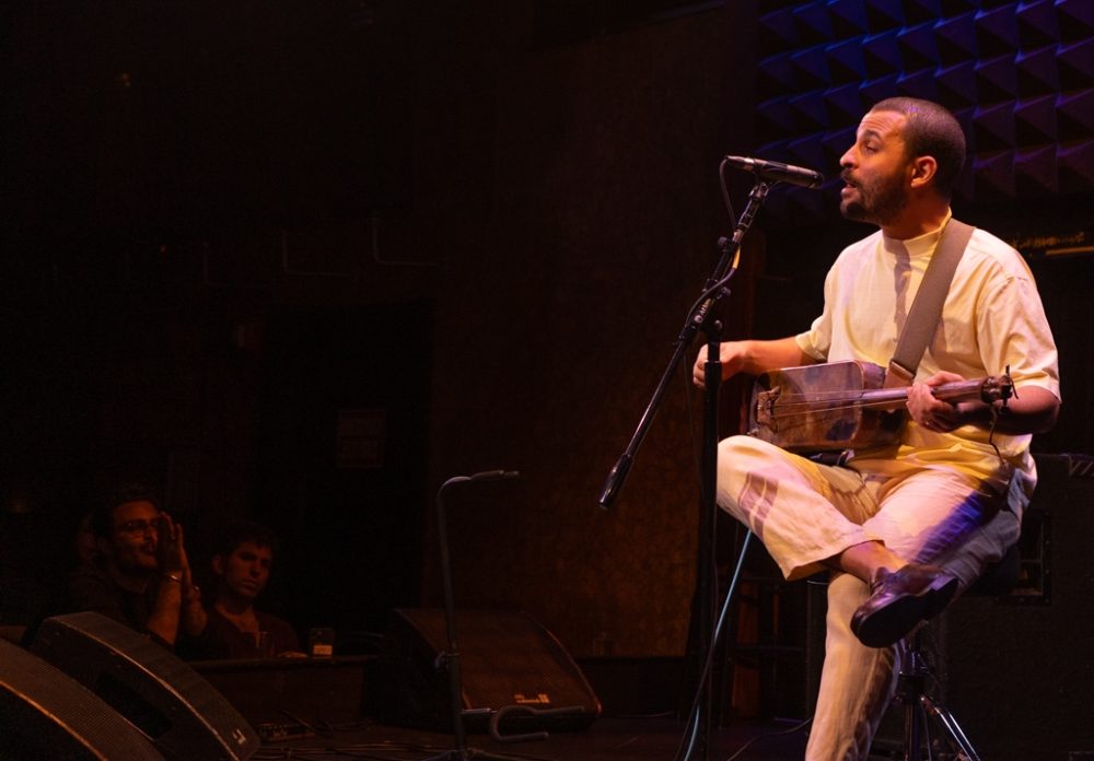 The first night opened with Nour Harkati of Tunesia alone with his Guembri (hajouj), the deep-toned lute of the Gnawa healing brotherhood of North Africa. His velvety voice accompanied by the warm, thumping lines of his Guembri proved mesmerizing, even without translation from the Arabic lyrics. Noor played spare renditions of songs from his upcoming band album, Moulana. He’ll be doing a full-band release event for the album on December 11 at Public Records in Brooklyn.