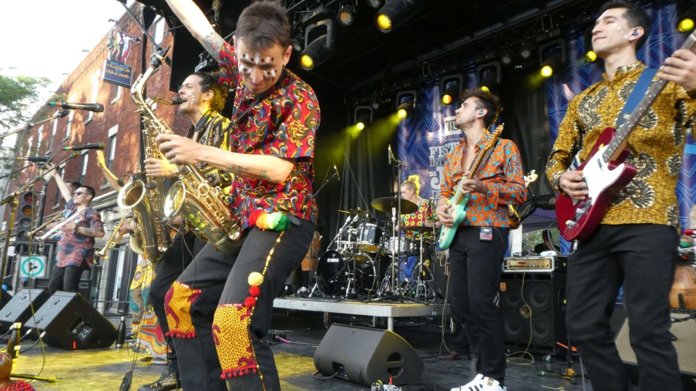 We sat down last week with two members of the group, singer/dancer Macarena “Maca” Rozic and saxophonist Klaus Brantmayer, the day after their stunning performance in Montreal at the Festival International de Jazz, to talk about the band, their music and their politics which infuses their music. We even learned a few words in Mapuche.
