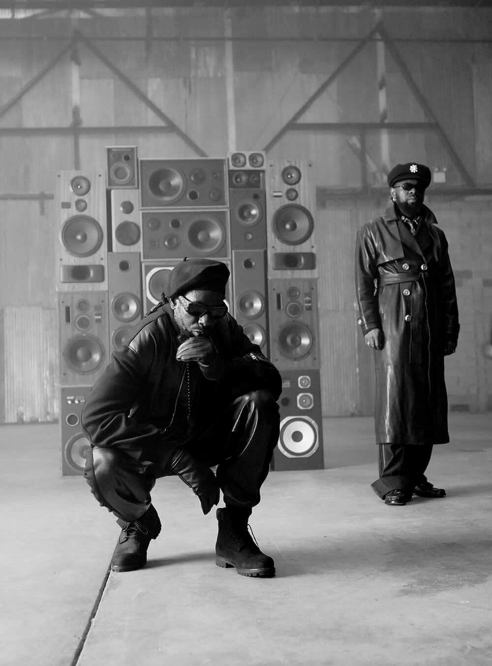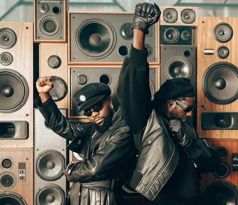 The visual styling reinforces this tone. The artists appear in black leather coats and militant silhouettes that evoke the disciplined aesthetic of Marcus Garvey’s Black nationalist imagery and the visual language associated with the Black Panther Party.