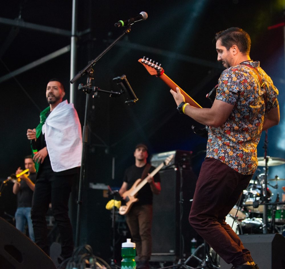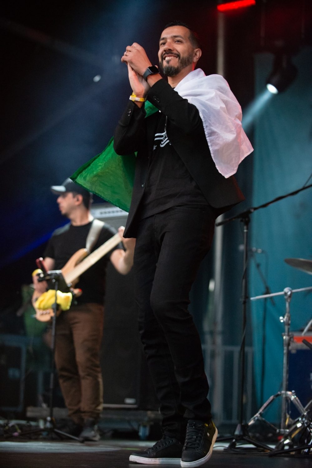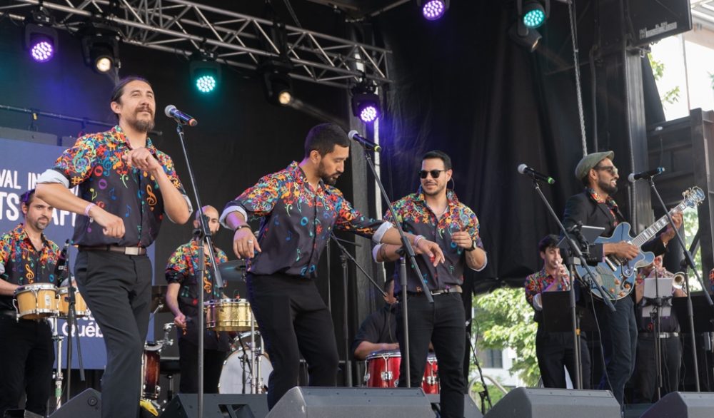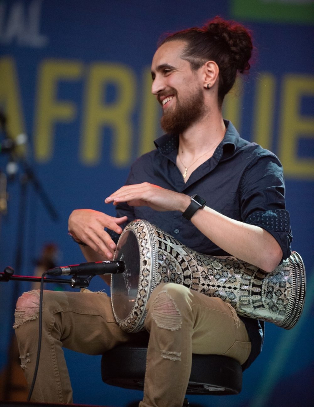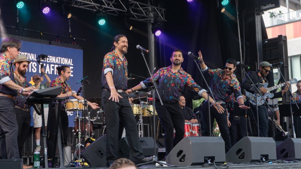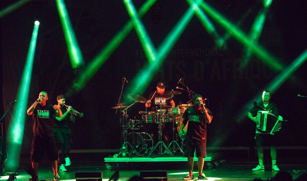 Sean and Banning taped interviews with Nigeria’s Yemi Alade; the Pacific Afro-Colombian ensemble Bejuco; Dicko Fils, a superb kamelengoni artist from Burkina Faso; and the Montreal based Algerian pop ensemble Afirka. Afirka were the winners of the Afropop prize in Montreal’s annual Syli D’Or battle of the bands, staged at Balatou, the nightclub run by Nuits D’Afrique festival founder Lamine Touré. Afirka stole our hearts with their spot-on adaptations of classic rai, chaabi and Kabyle pop from Algeria. They were even better on the big Radio-Canada stage at the festival site.