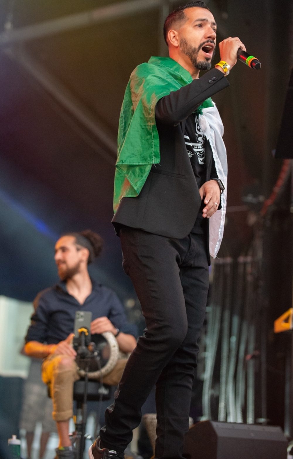Aeli-G and his guest singer/rappers covered a range of styles from "seben" to kompa to Afrobeats. The set was a bit chaotic, but high spirited.