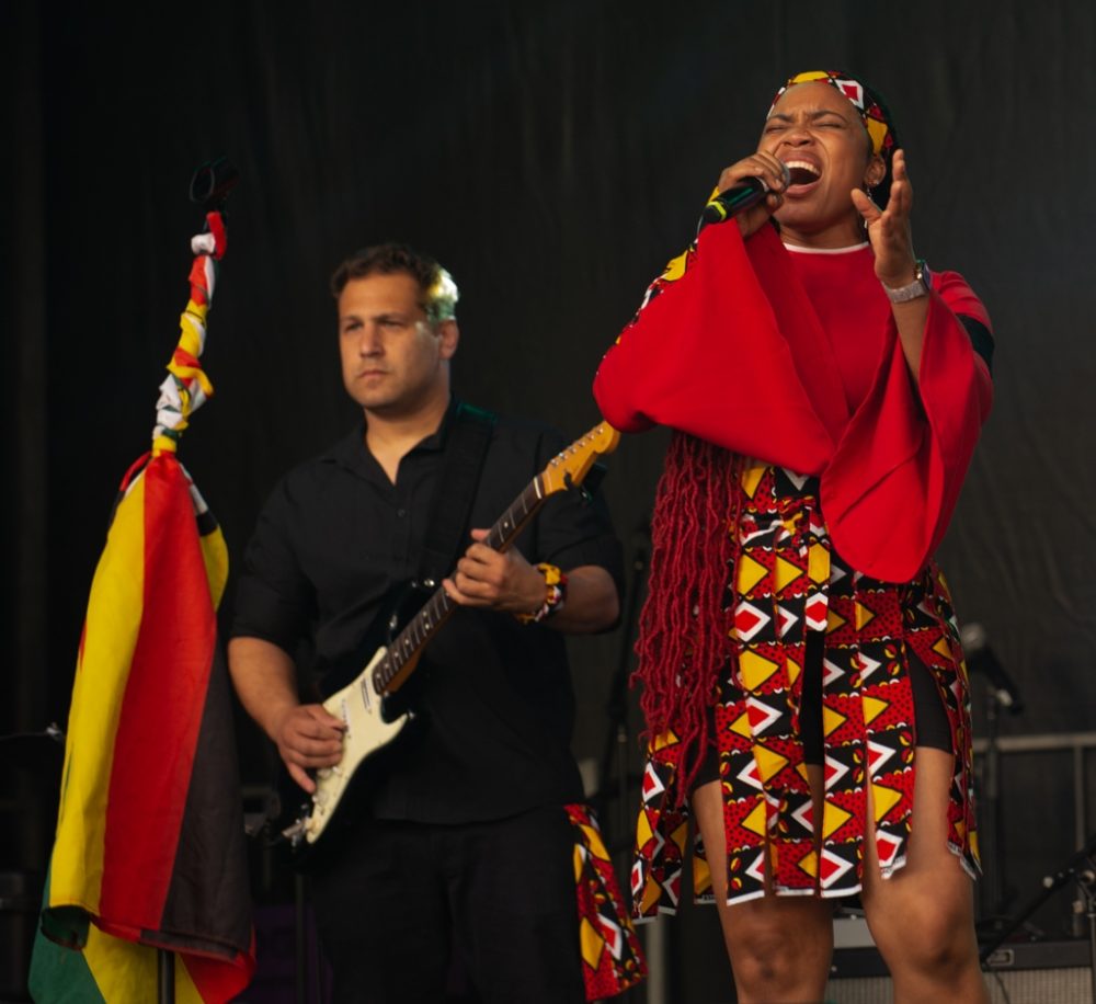 This is a songstress drawing on Zimbabwean grooves from mbira to Tuku music, with a little R&B thrown in. She has a strong, rich voice. Apparently there was a technical issue that prevented her from playing her mbira, but it was a rousing, well received set, including some thrilling dance moves from her percussionist.