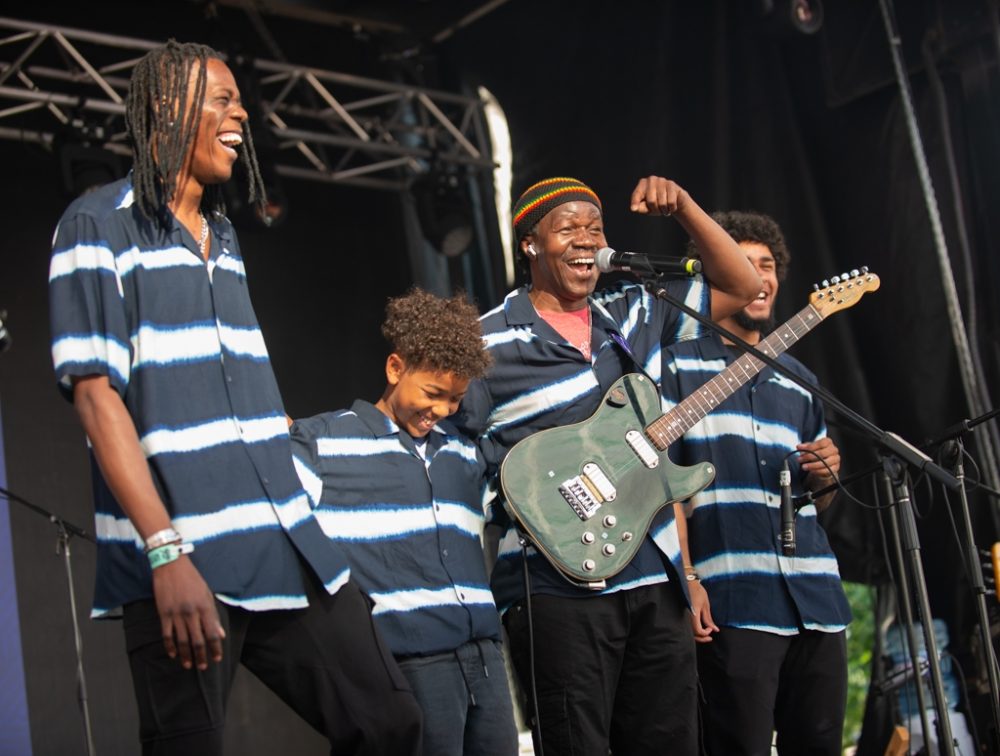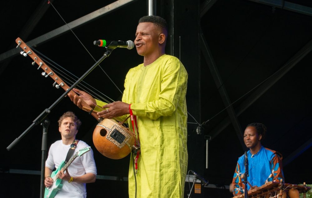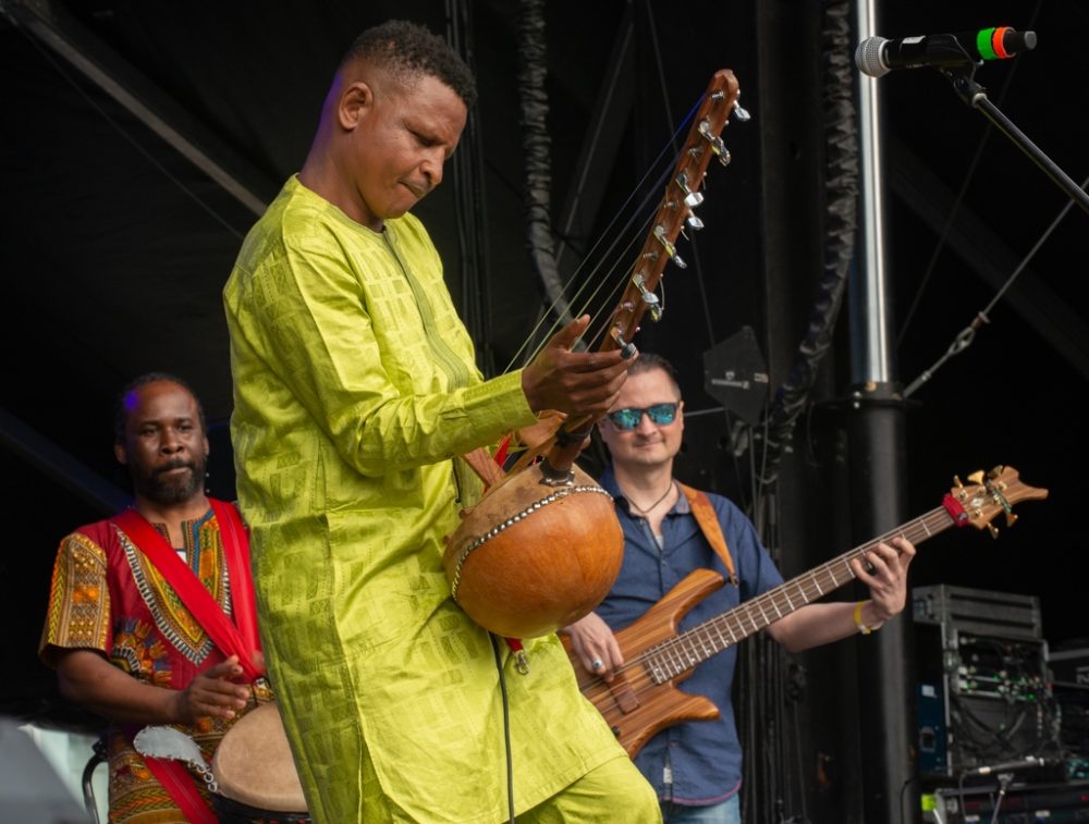 Mande griot Aboulaye Koné and his two sons delivered a kinetic, polished set of classic West African grooves, with Papa Koné's powerful voice and fleet guitar work at center stage. They made a joyful trio and produced smiles all around.