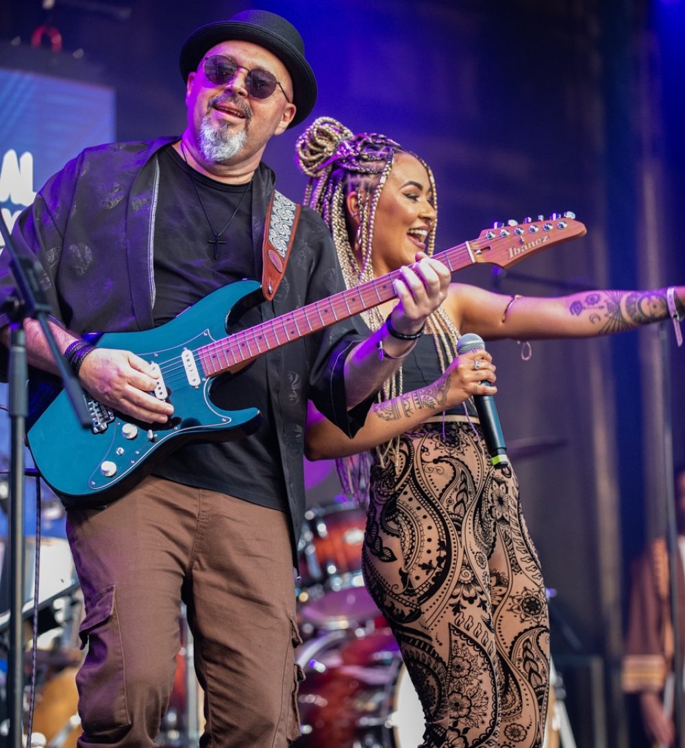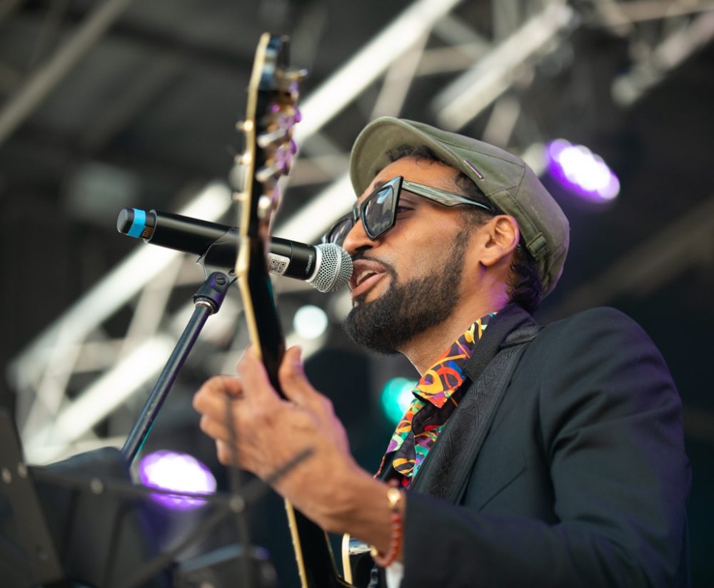 Diogo Ramos is a Brazilian singer/songwriter/guitarist from Bahia. He's been based in Montreal for some years, and was featured on our 2022 festival program. Here, with a full band, Ramos played a fine set of mostly original songs in the MPB tradition.