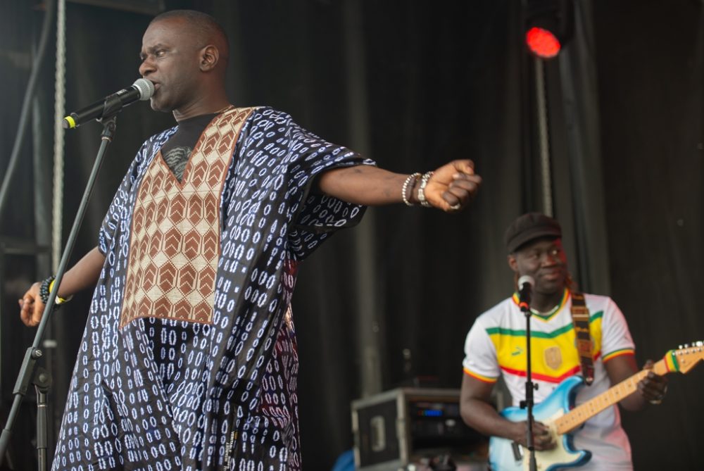 This is a spectacular artist from the Burkina Faso side of Wassoulou music. Playing the kamelengoni, a signature instrument of the genre, he sings in raw, earthy tones reminiscent of hunters' music. Dicko played a beautiful acoustic set in the Nuits D'Afrique Cabaret on Thursday, and brought his full-force band to the big stage the next night.