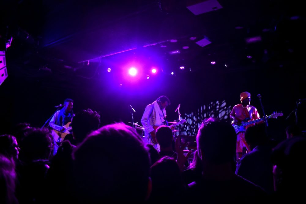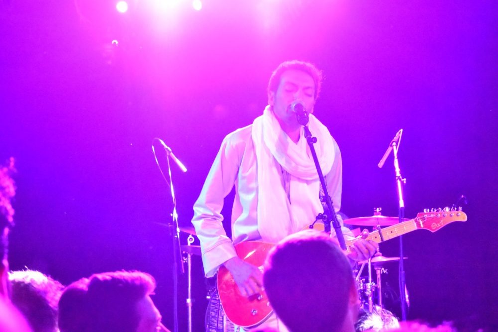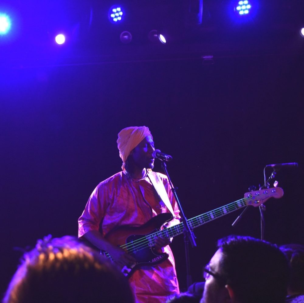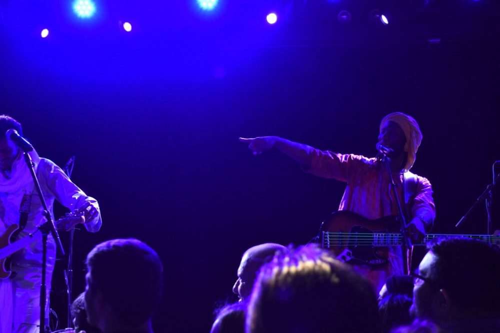 Presented by World Music Institute, Bombino was backed by Group Bombino, a quintet of two guitars, synthesizer (and occasional keyar), bass and drums. A typical Bombino song is in a swinging meter, driven by a back beat that occasionally skews to reggae. At several points in the night Bombino would be soloing as his backing band slowly and steadily built tension, until finally with the crack of the snare, it felt like a storm was breaking and the band sped off in euphoria, Bombino’s fingers becoming a blur.