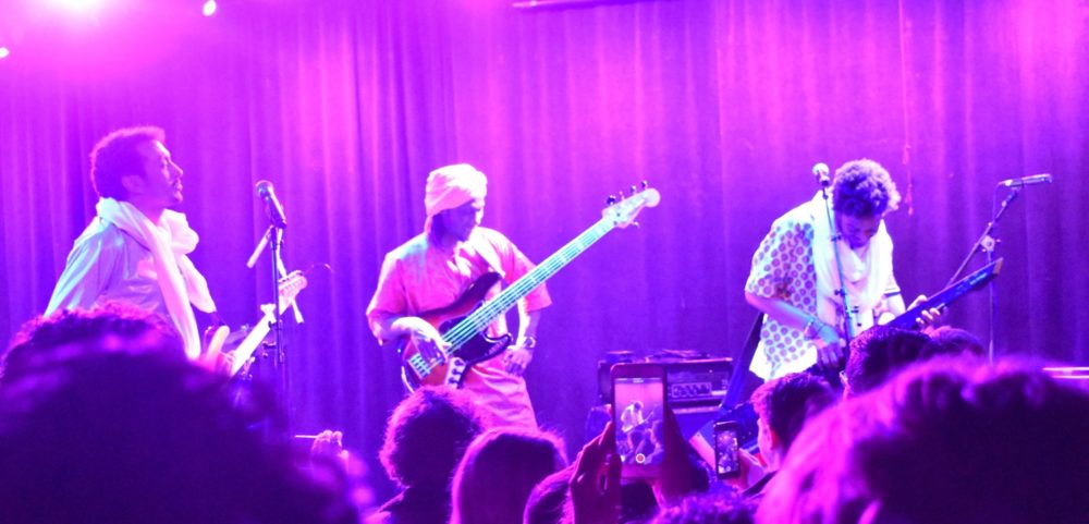 Nigerien guitar wizard Bombino played (le) Poisson Rouge in Manhattan, Wed., March 20 to an ecstatic and welcoming crowd. The band ripped through songs from Bombino's latest record, Deran, as well as his back catalog, starting slowly and gradually building until the whole of LPR’s room turned into a dance floor.