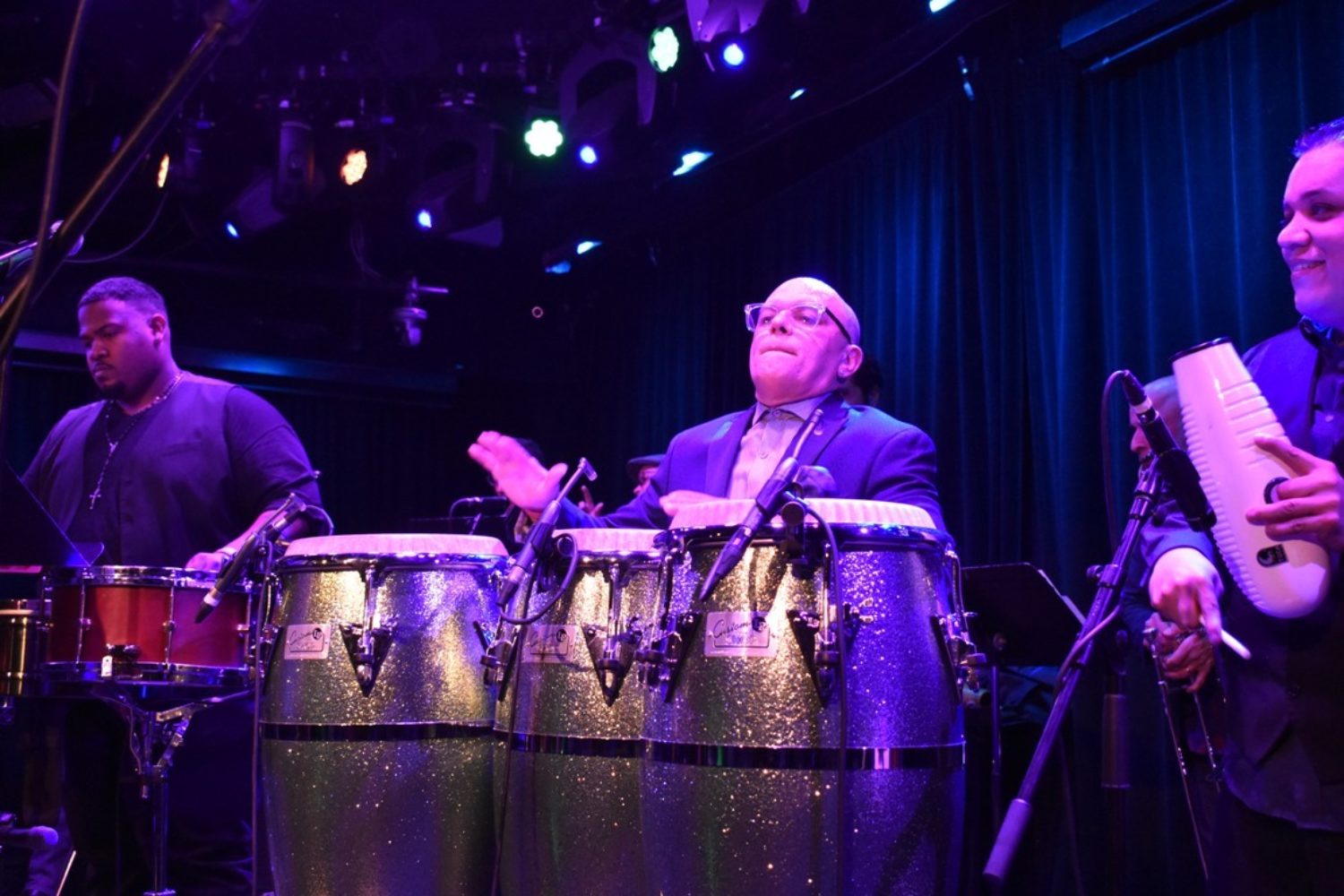 Palmieri was no stranger to the Uprising All Stars, affectionately introducing and then roasting and occasionally firing each member. Established musicians Doug Beavers and Jimmy Bosch played the trombones like there was something crammed into the end of them, and the only thing that could lodge it free was all of the lung power they could muster. Vincent “Little Johnny” Rivero anchored the congas, and Camilo Molina seemed to steer the band from behind some of the most fearsome timbale playing I’ve ever heard. Actor and singer Quique Gonzalez was on lead vocals and was the de facto lead dancer, although behind him, the group seemed continually to sway and step as one.