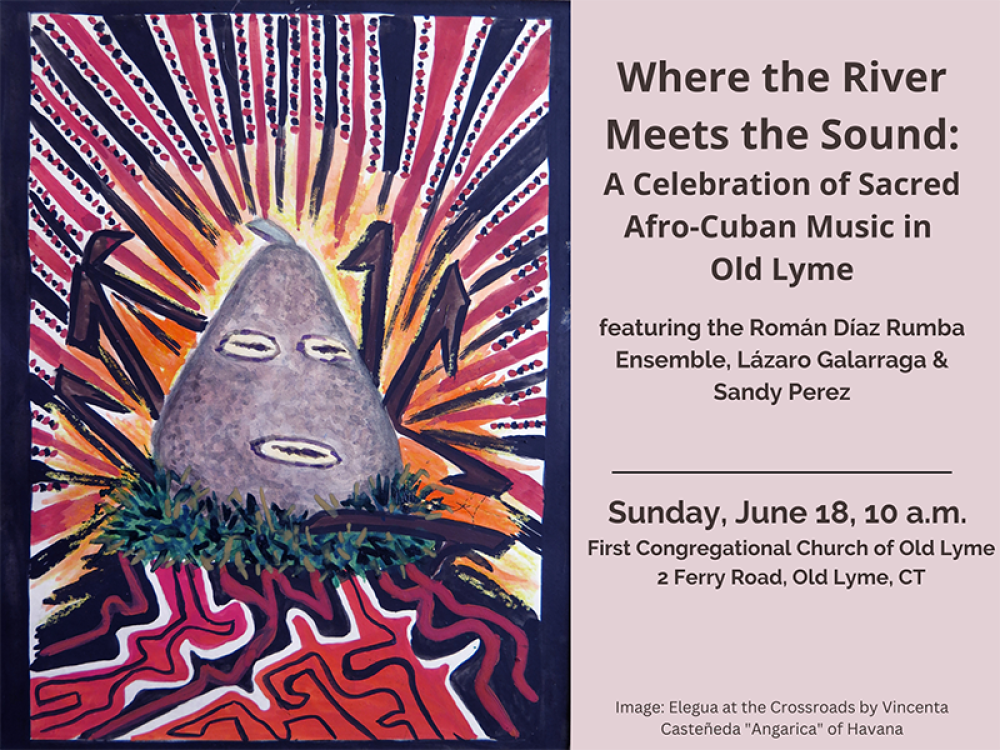 It started with an email from Pastor Steven Jungkeit of the Old Lyme Congregational Church in Old Lyme, Connecticut. Steven was inviting us to two weekend events featuring Román Diaz and his Cuban rumba ensemble, with two visiting rumba elders, Lazaro Galarraga based in Los Angeles and Sandy Perez based in Boston. On Saturday night, they would perform in Essex, CT, on the banks of the Connecticut River, and on Sunday morning, at the Old Lyme Congregational Church.