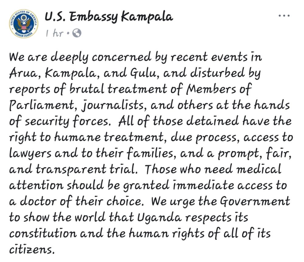 When the rally ended, the crowd dispersed. President Museveni was also there at a separate rally in support of his candidate. As the presidential convoy made its way to his helicopter it is claimed that some stones were thrown. The president was unharmed and continued to his helicopter. Following his departure the security forces made their way to Bobi's temporary HQ in Arua's Pacific Hotel. His driver, Yasin Kawuma, was sitting in a car parked outside the hotel. He was shot in the head at close range and killed. The security forces attributed his death to "a stray bullet." Bobi tweeted that they'd thought it was him. That was the last communication from Bobi. The security forces then ransacked the hotel, kicking in 22 doors and arresting many people including hotel staff and journalists as well as Kassiano Wadri, the candidate whose election bid Bobi had come to support, and three other opposition MPs.