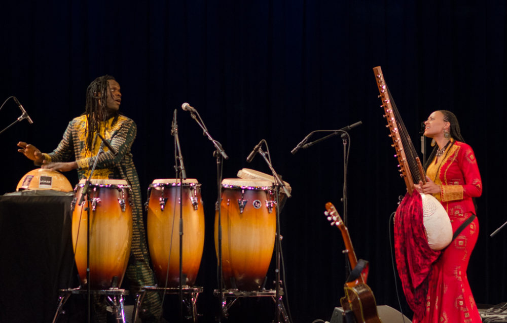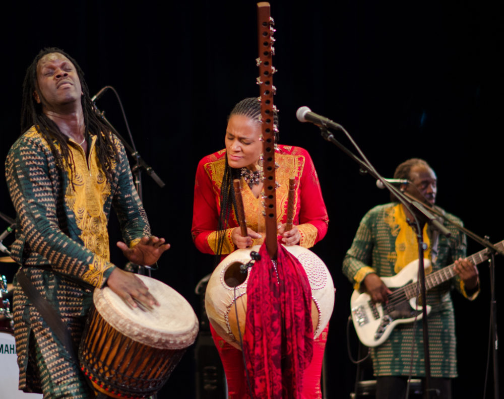 Afropop’s Banning Eyre saw Jobarteh and her group for the first time at New York’s Symphony Space this summer. (The photos in this feature are his from that performance.) Suffice it to say, he was blown away. He sat down with Jobarteh recently for a talk in New Haven, CT, where she was laying down tracks for an upcoming album release. Here’s their conversation.