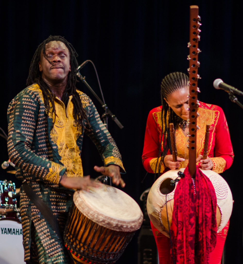 He was the easiest person I think for me in terms of that, because from the first time I played with him, he played three or four seconds and I was like, "Yes. I don't care what you do. Yes. Yes.” He's Senegalese. He plays with Baaba Maal, so he's very well-established. What I really needed from a percussionist is someone who understands the Manding tradition, and at the same time can also bring innovation to it—someone who is not so stuck that I can't give them something new and not make him struggle. This was always my challenge before I found him. I either got very traditional players who knew the songs, and it was beautiful to play as long as we stuck to “Jarabi” as “Jarabi” is played. But as soon as you want to change the timing or put it on its head or push it out and do different things, it becomes a big problem. And likewise if you go for someone who can do that innovation, then they don't know the tradition. I was always falling in between those two places, so to find Mamadou, who could do both, was a blessing.