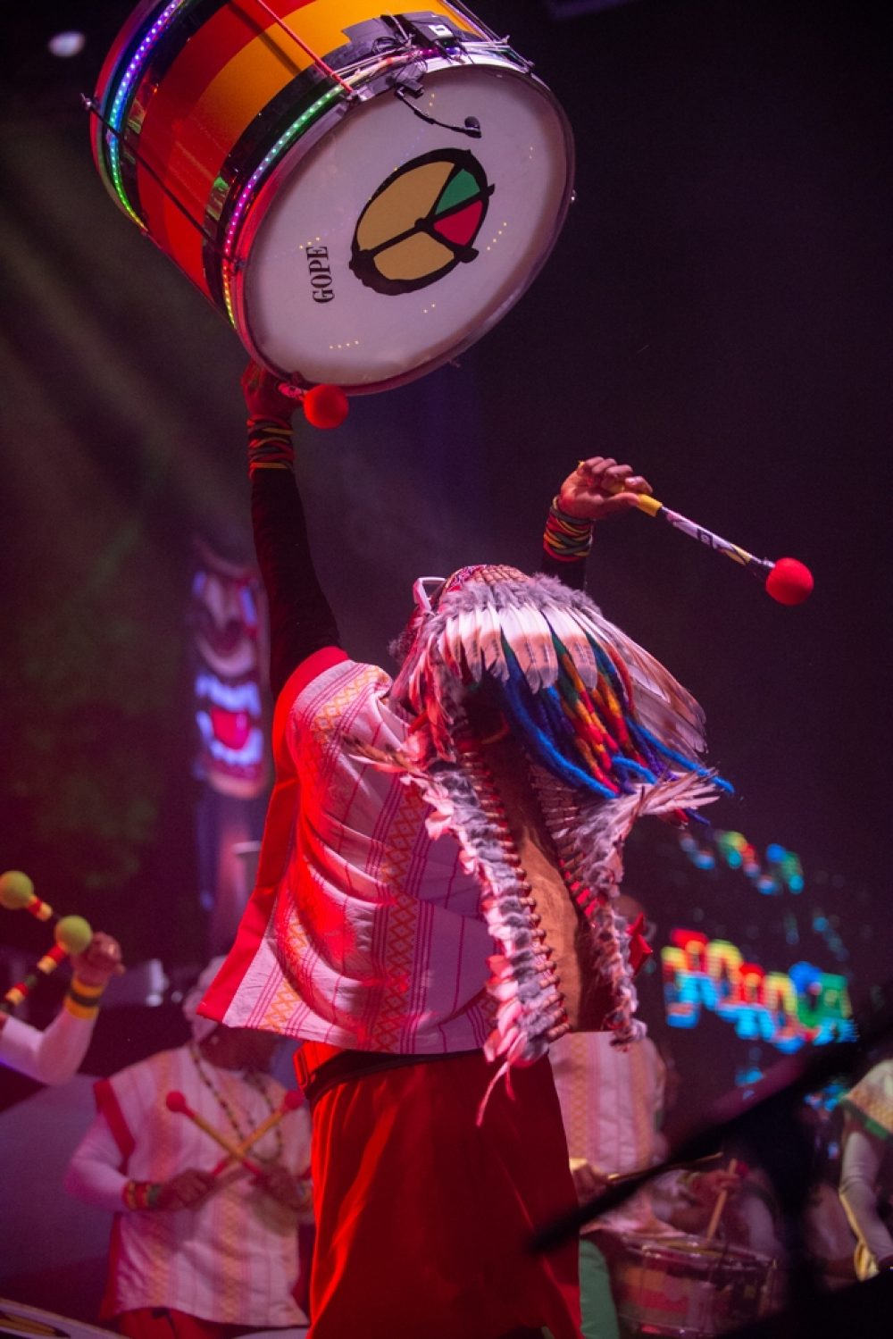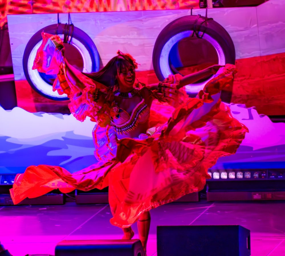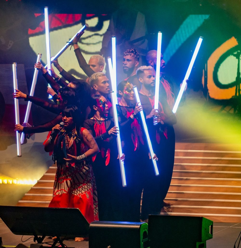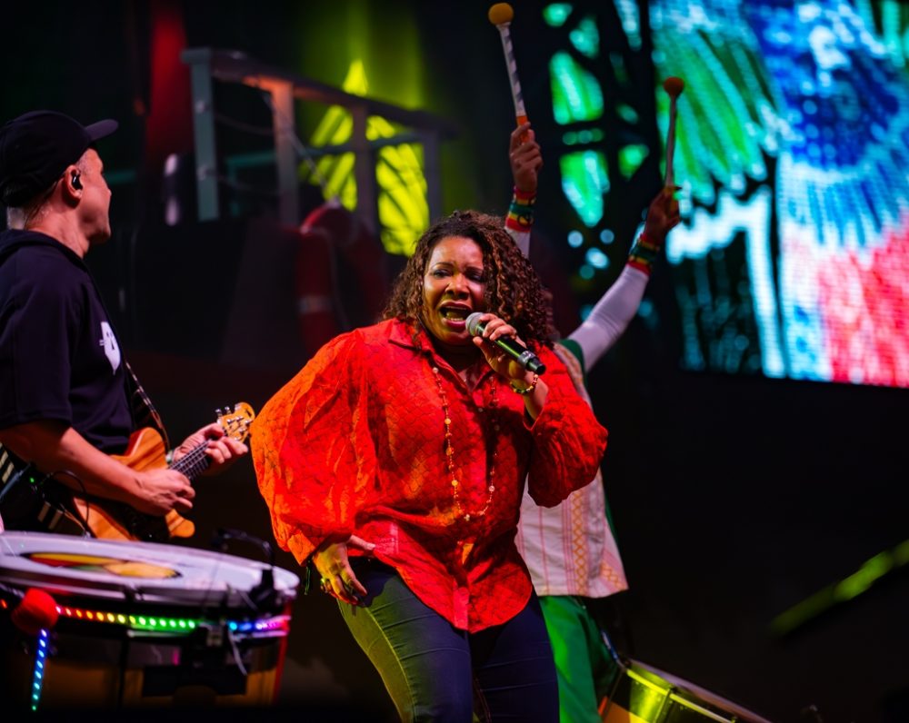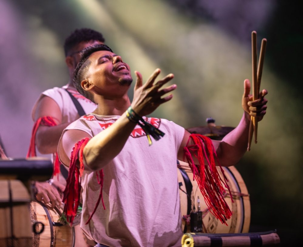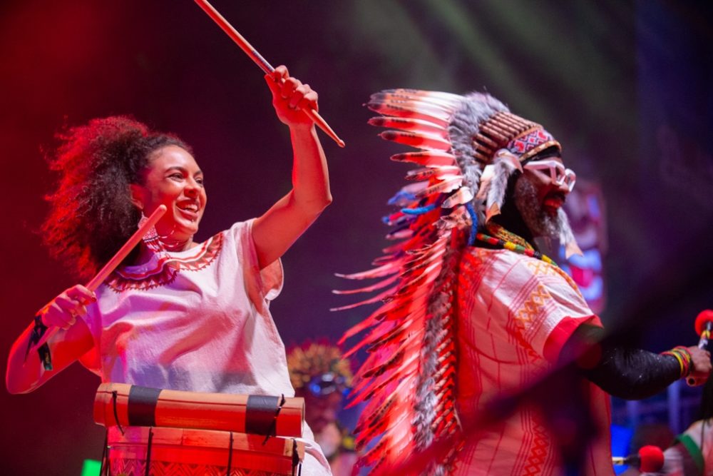 The horrific challenges and awesome beauty of the Amazon in the 21st century were on constant display in artful video displays throughout the evening: burning forests, indigenous rituals, grand views of life on the river and awful scenes of environmental destruction. Meanwhile, vibrant expressions of Afro-indigenous-Brazilian music and dance unfolded in the foreground. There was the Bahian afro-bloco Olodum, singers Fafade Belem and Aíla, the genre-bending hip-hop act Baiana System, and of course Margareth Menezes and, for the closer, Brazil’s preeminent maestro, percussionist and songwriter Carlinos Brown.