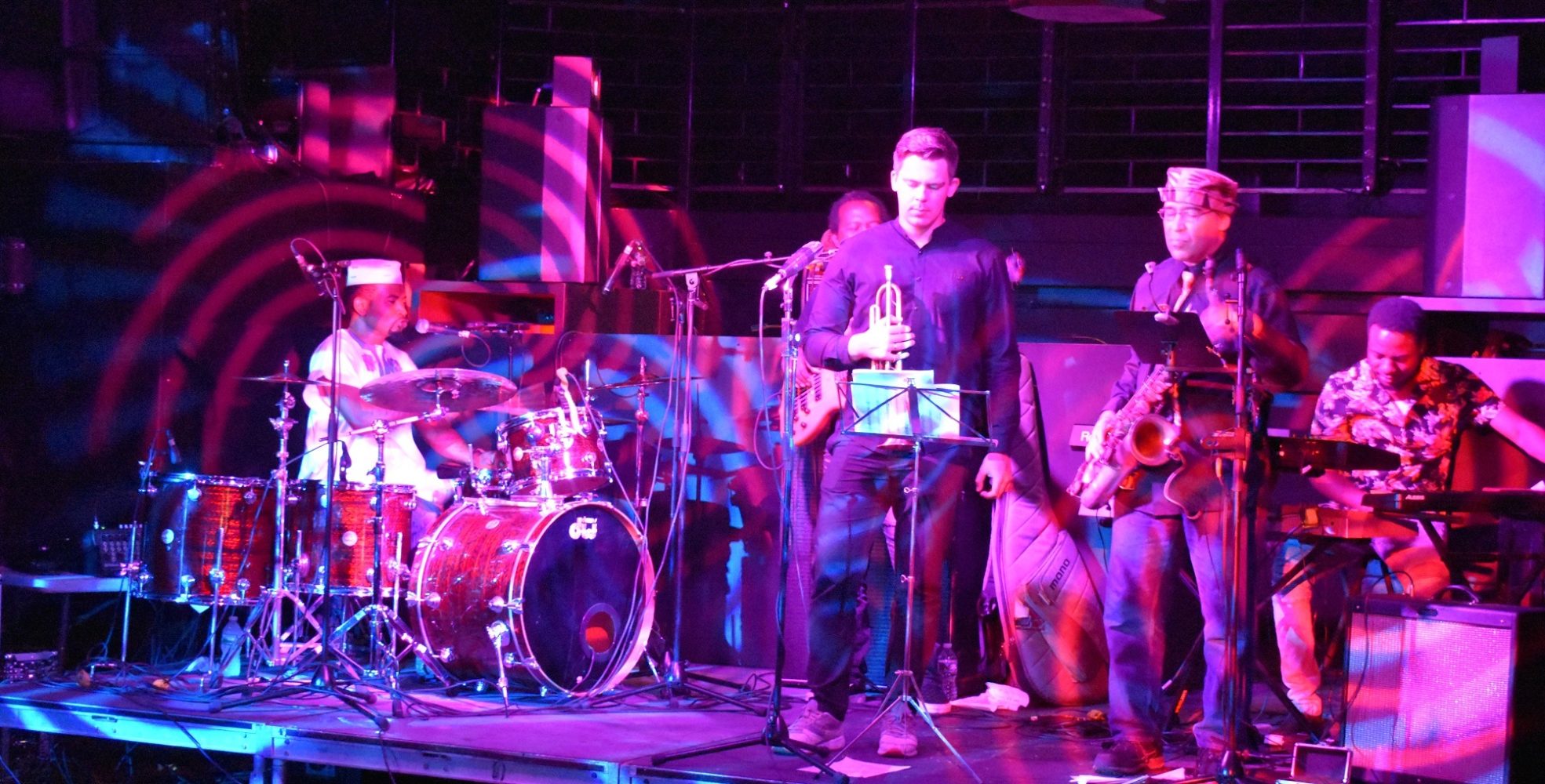 The band kept things tight and upbeat for the live show, eschewing the variation heard on the record. Saxophone, keyboards and trumpet traded solos, while Tosin and the bass strutted in lockstep under it all.