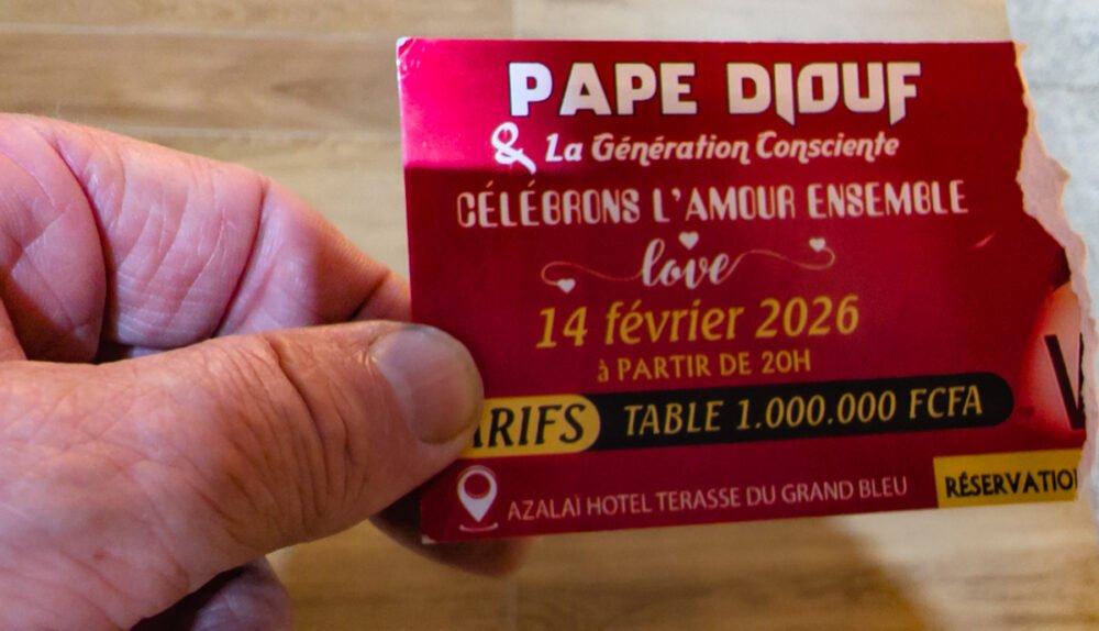 Meanwhile, Sean had taken advantage of the ultimate invitation, to Youssou N’Dour’s Valentine’s show in an enormous tent behind the King Fahd Hotel in Almadies. In the VIP section, no less. This show began half-past-midnight and ran for over three hours, so Banning was able to slip in for the later part. We’ve mentioned the impressive force and tightness of these Dakar bands, but Youssou’s is simply on another level. The transitions between songs were seamless, giving the feeling of non-stop music, hour after hour. And the crowd of thousands gathered there seemed to know all the words and sang along frequently creating communal ambiance like nothing else we had seen or heard.
