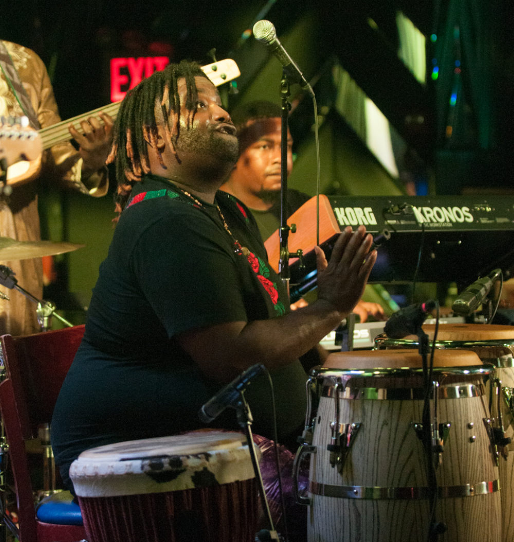 Accompanying Braimah were guitarist and djeli ngoni player Sam Dickey (Fatoumata Diawara), guitarist Raja Kassis (Antibalas), bass man Cheikh N’Doye (Baaba Maal’s musical director), percussionist Luke Quaranta (Toubab Krewe), multi-instrumentalist Munir Zakee, and New Orleans keyboardist Shea Pierre (Amadou and Mariam/Fatoumata Diawara).