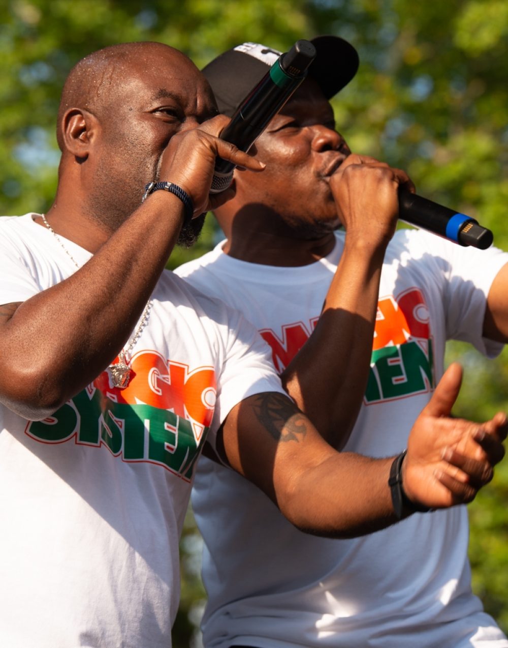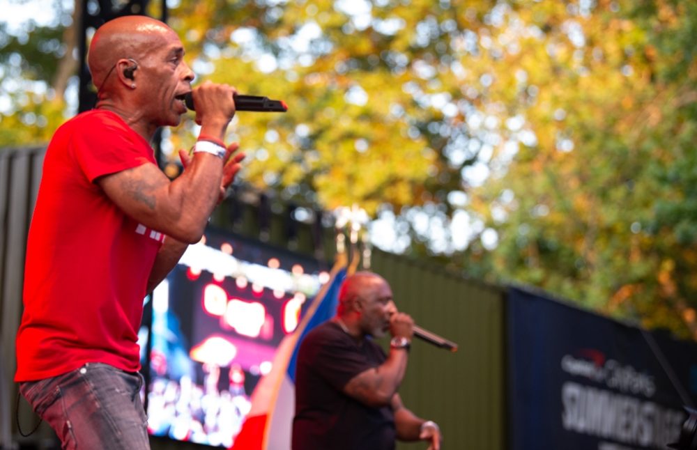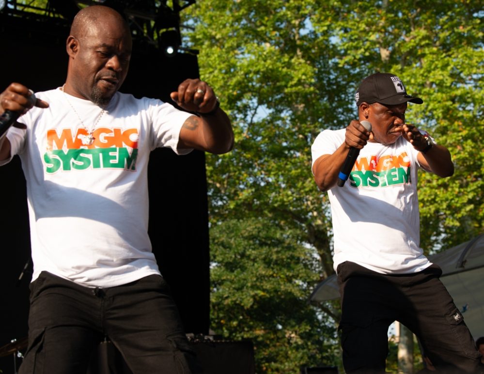 The Consulate General of France knows how to throw a party! Bastille Day at Rumsey Field, Central Park SummerStage was an overflow affair. But folks for blocks around could hear the robust, joyous vocal prowess of Magic System. The four singing, dancing guys—looking great, by the way—were using playback, their songs carried the day, with everyone waving French flags and singing “Magic in the Air.”