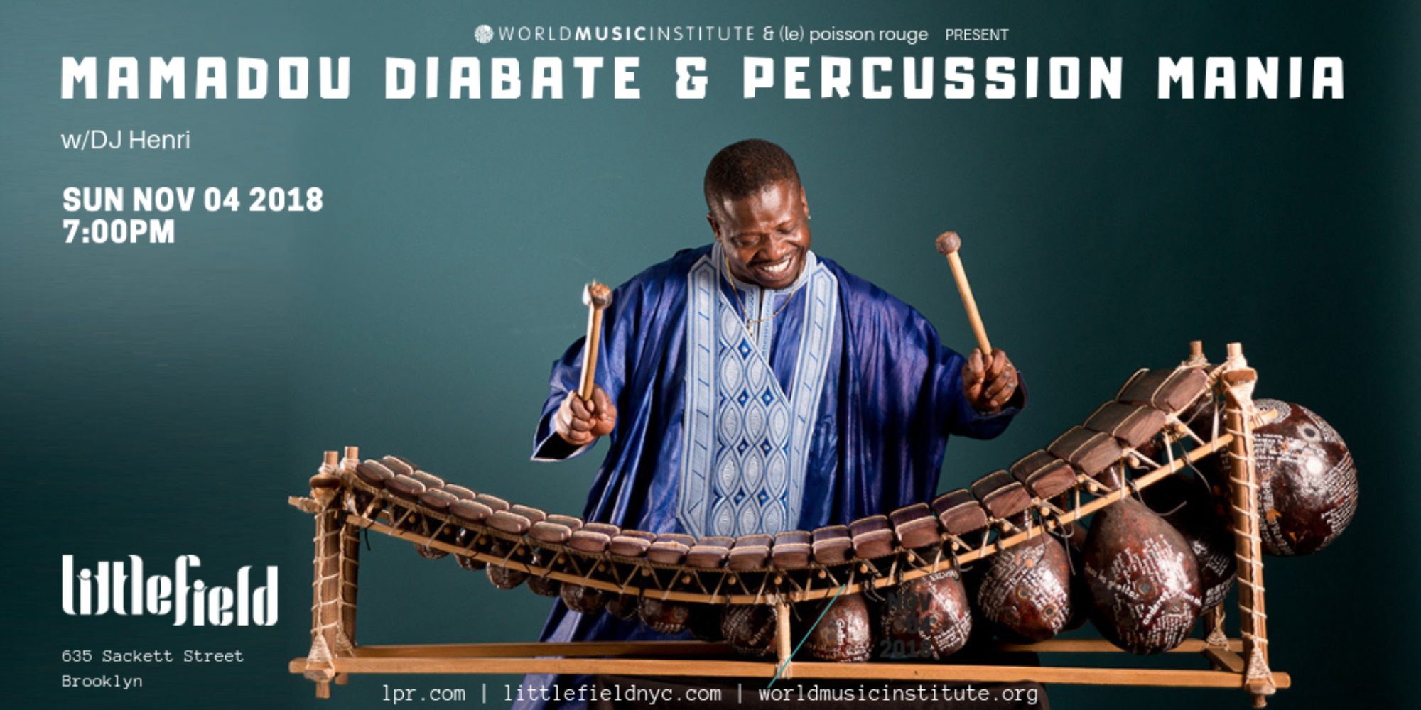 Mamadou Diabate is bringing his Percussion Mania group to Brooklyn's Littlefield, Sun., Nov. 4, and you should go. And what's more, you can go for free, thanks to our friends at the World Music Institute.