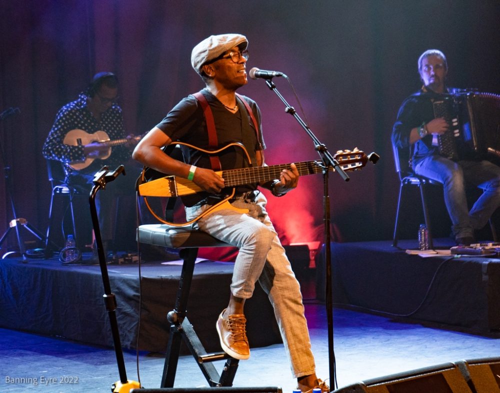The spirit of Guinea-Bissau gumbe music animated this joyous set from a new artist to Afropop Worldwide. Backed by a strong Portuguese band, Karyna charmed the crowd at the Lusofónica stage with buoyant grooves and warm liquid vocals.